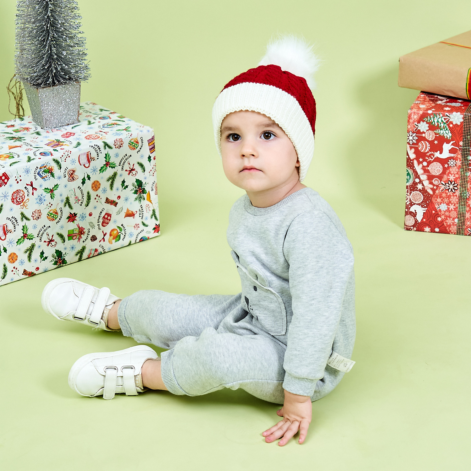 크로스 국경 크리스마스 유럽과 미국 어린이 봉제 볼 모자 크리스마스 선물 버건디 따뜻한 니트 모자 양모 모자스토어 가기