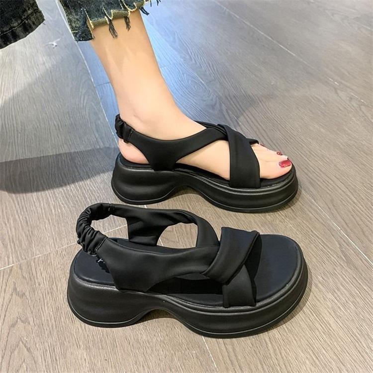부드러운 가죽 샌들 여성용 2023 여름 새로운 두꺼운 밑창 샌들 작은 남성용 고급 느낌 스커트 로마 신발