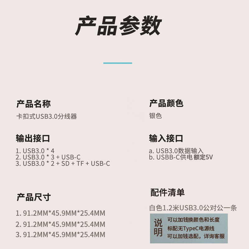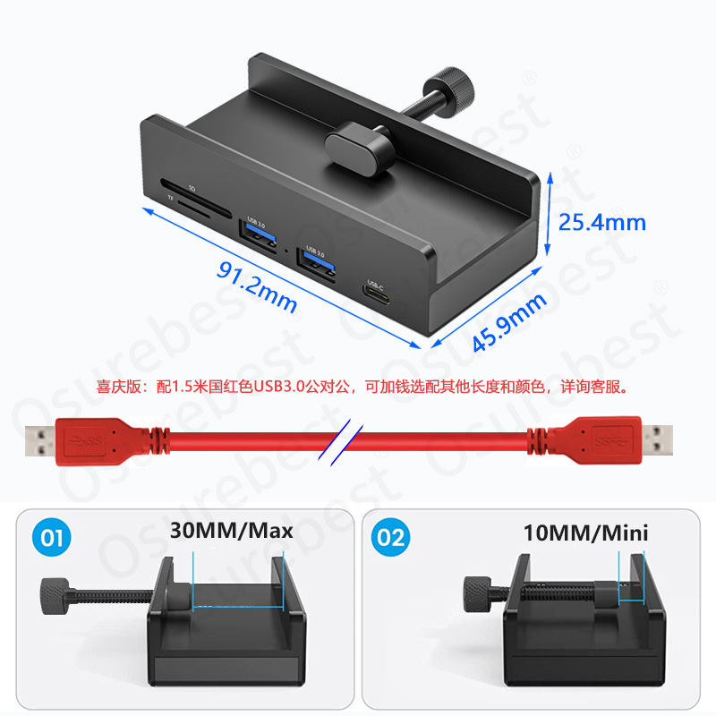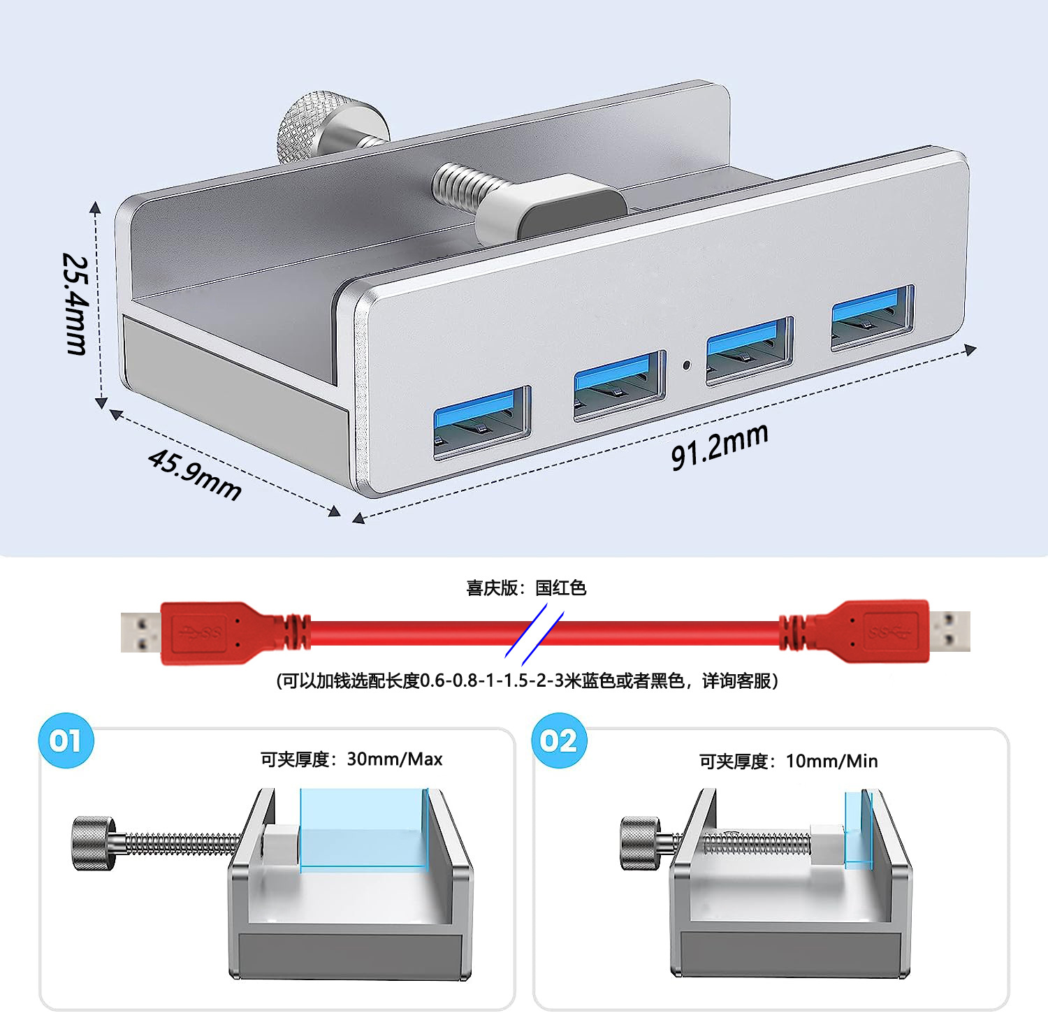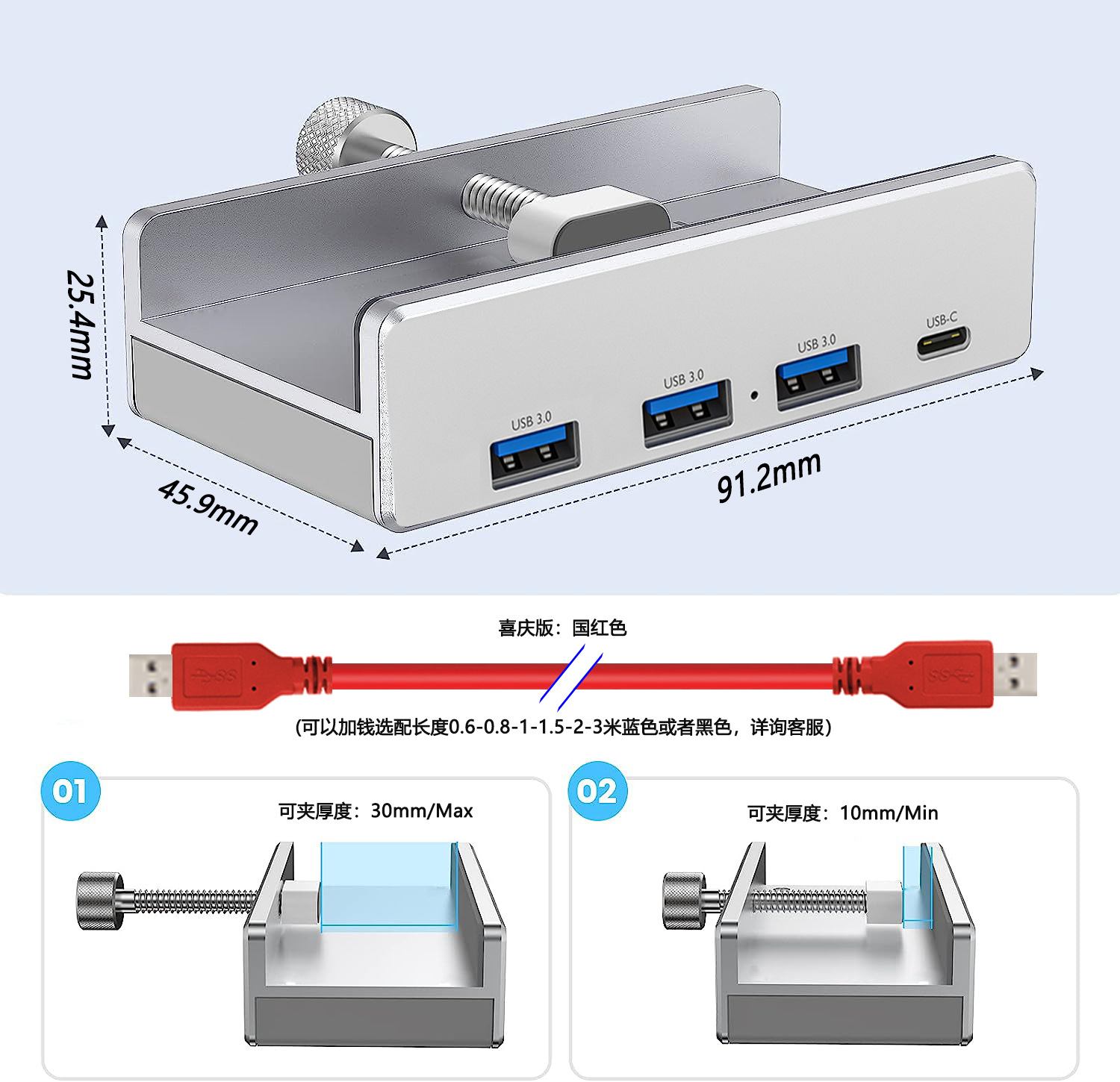 크로스보더 허브 USB3.0 확장기 알루미늄 합금 데스크탑 컴퓨터 확장 도크 5-in-1 허브 클립형스토어 가기