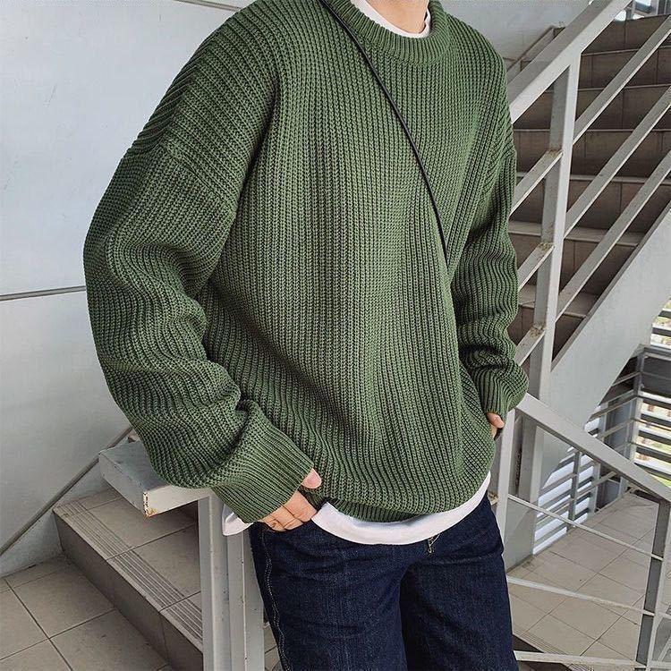 남성용 라운드 넥 스웨터 2022 새로운 가을과 겨울 이너베이스 니트 스웨터 느슨한 두꺼운 한국 유행스토어 가기