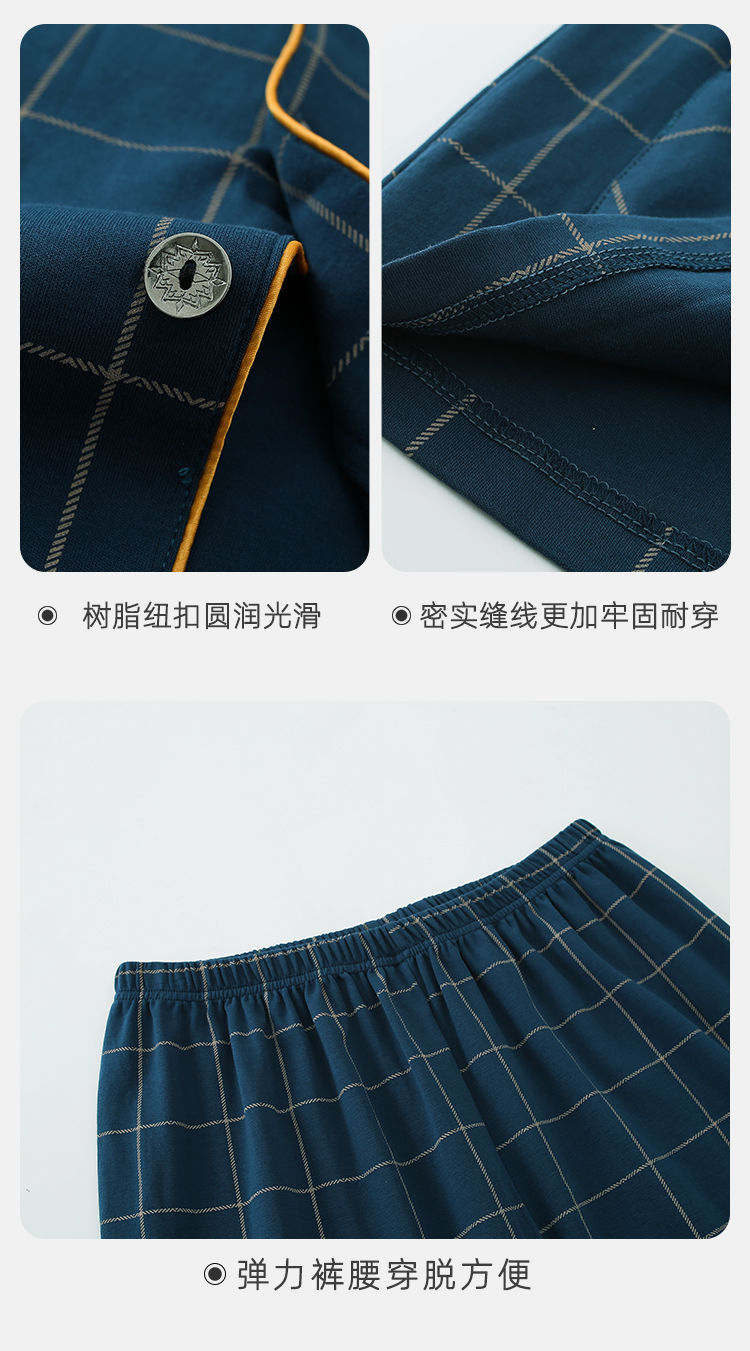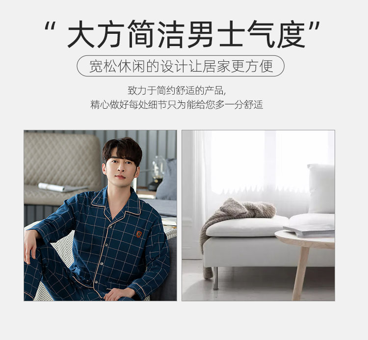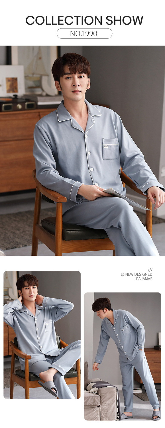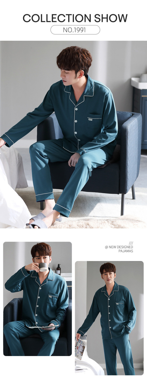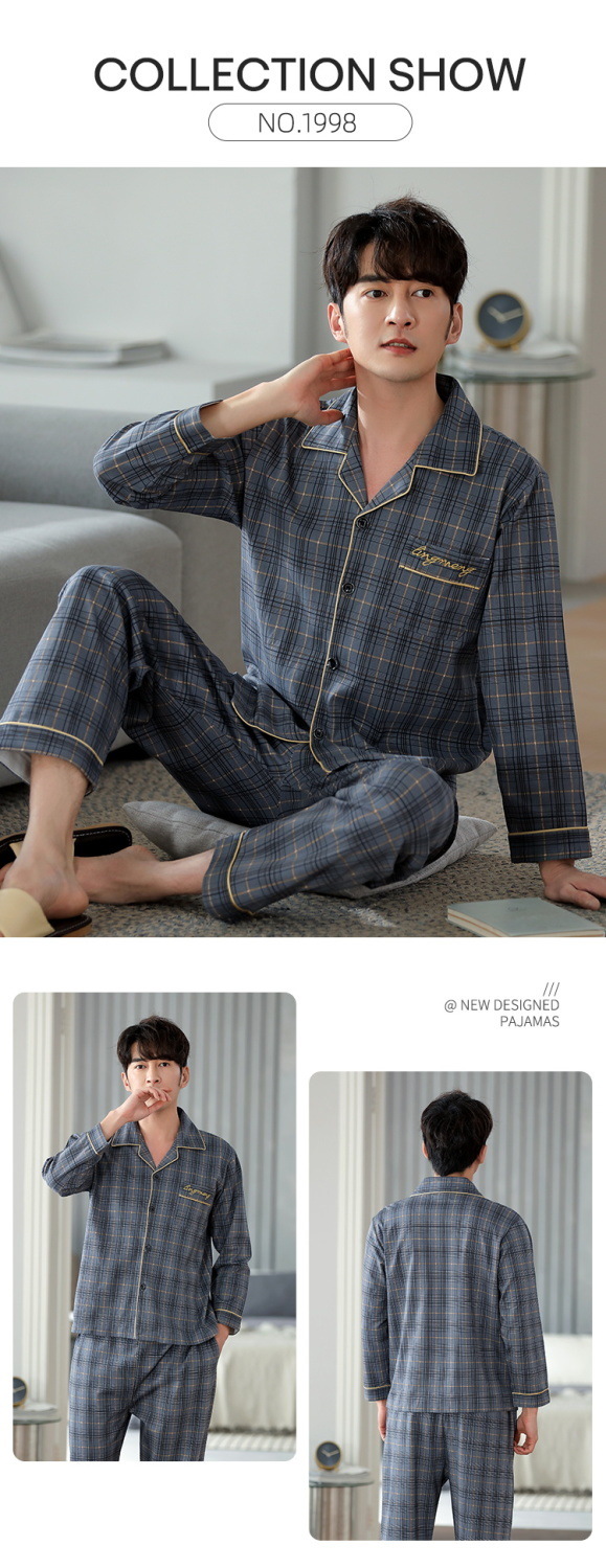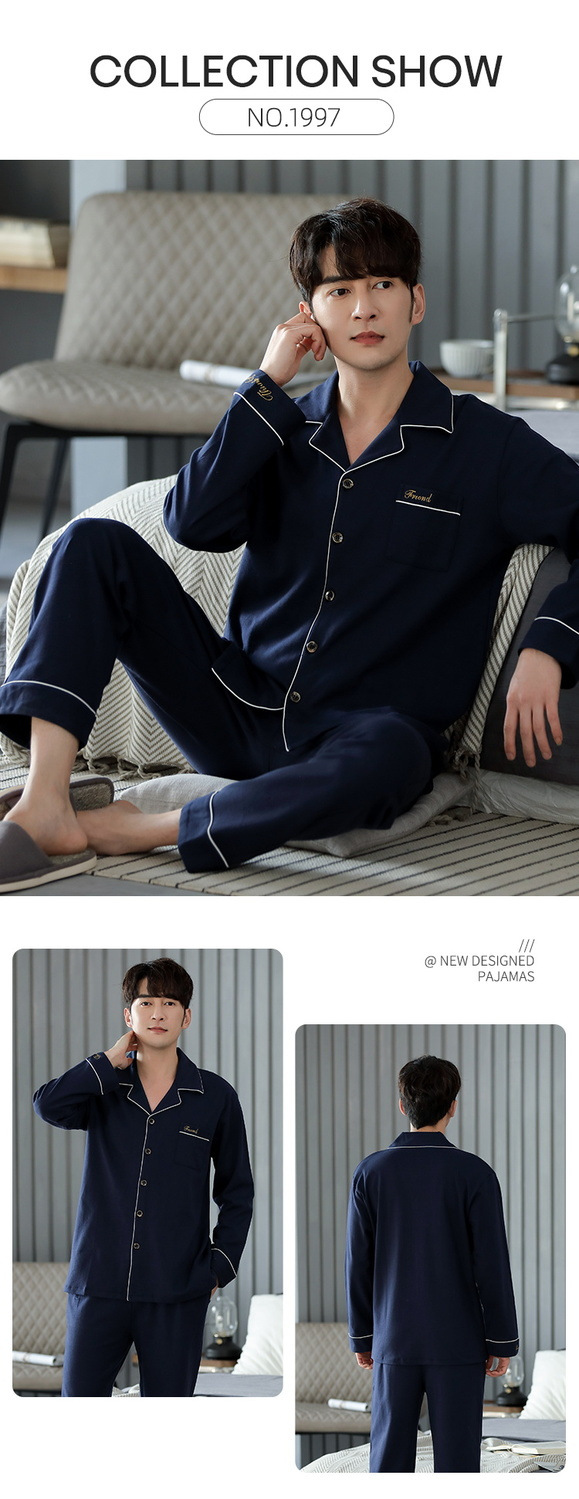 양면 100% 면 잠옷 남자의 봄과 가을 긴 소매 옷깃 세트 가을과 겨울 중년 가정 의류스토어 가기