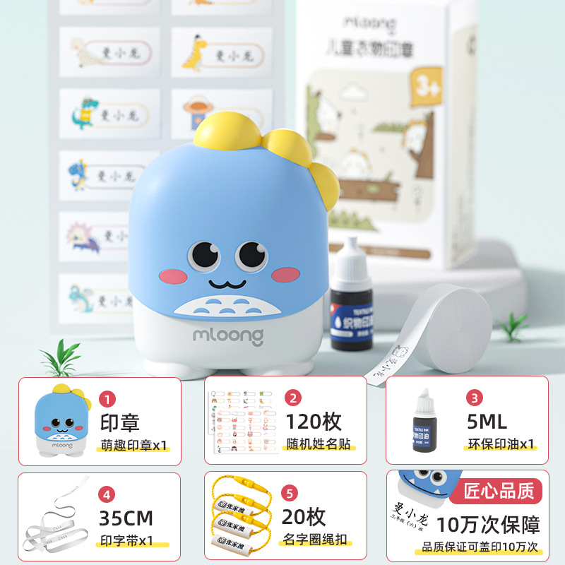 • 아동복 씰-로로공룡 (5 종 세트) (선물 인쇄 오일 + 핫 스탬핑 벨트 + 120 이름 페이스트 + 20 이름 원형 로프 버클)