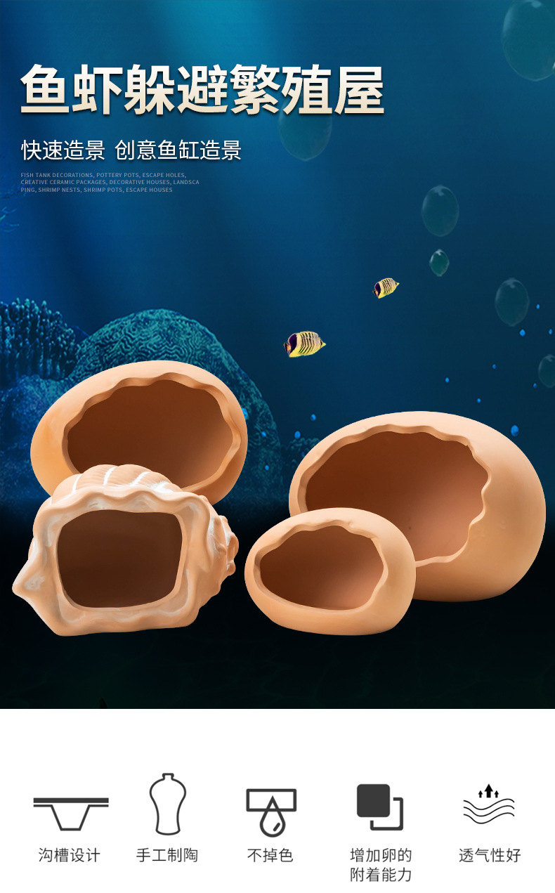 어항 풍경 재현 탱크 수족관 장식 물고기와 새우 탈출 산란 집 도자기 냄비 장식품 물 잔디 가정용 소라 모양스토어 가기
