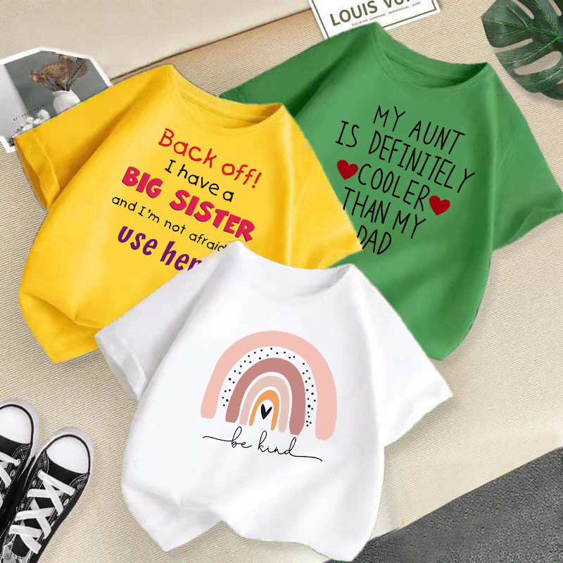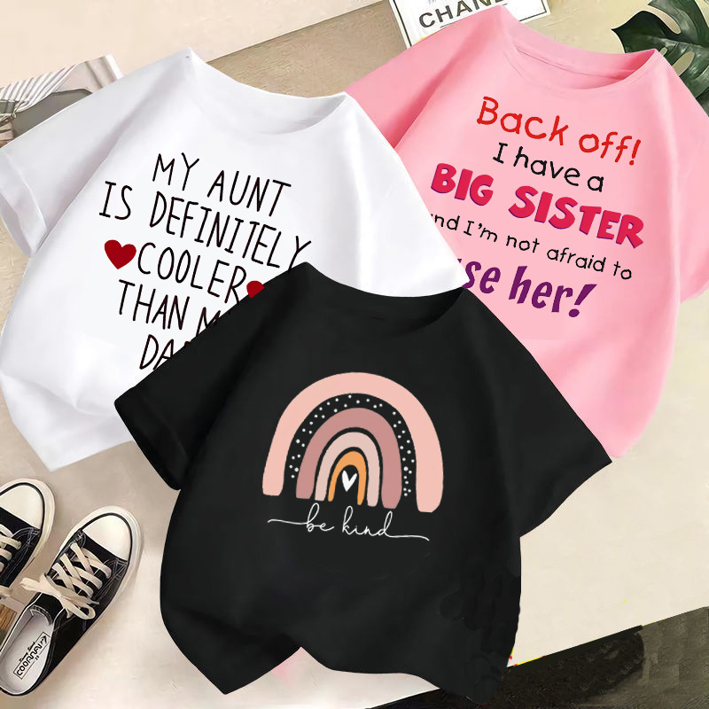 어린이 티셔츠 2024 여름 새 여아 크루 넥 반팔 아기 싱글 탑 여자 편지 여름 유행 옷스토어 가기