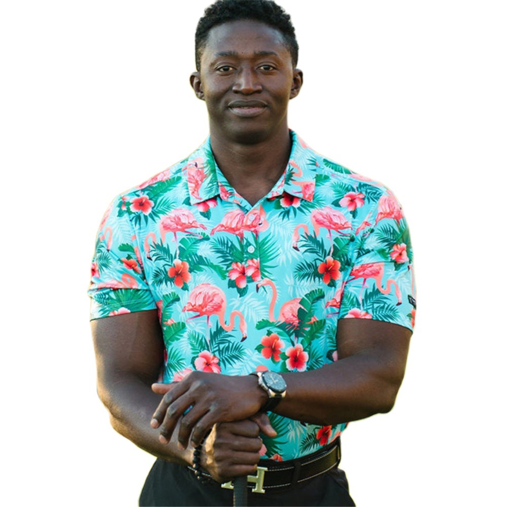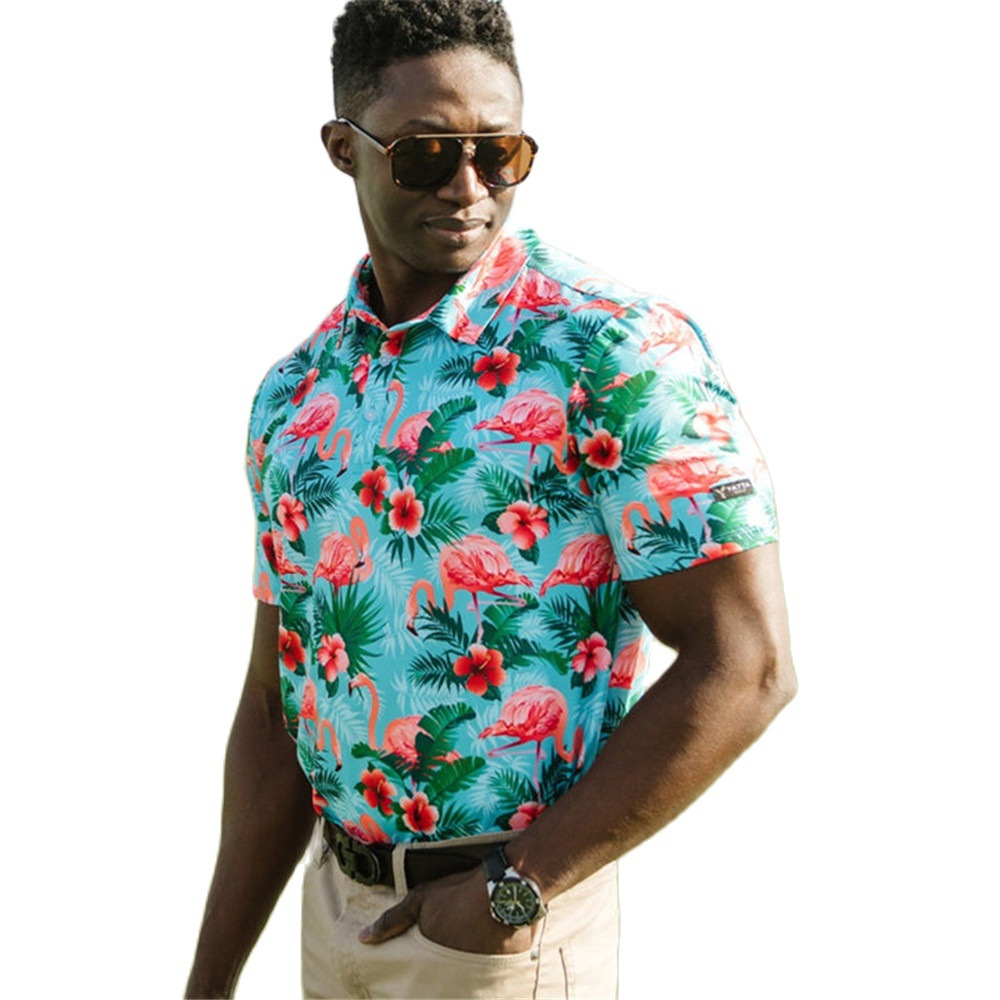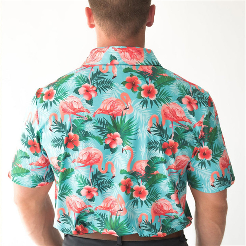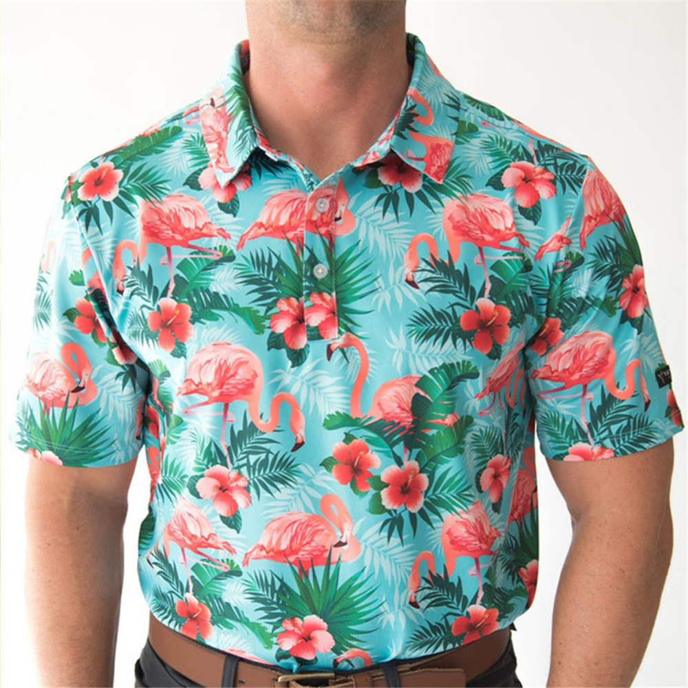 새로운 여름 골프 남자 플라밍고 인쇄 폴로 셔츠 탁구 옷 빠른 건조 하와이 탑스토어 가기