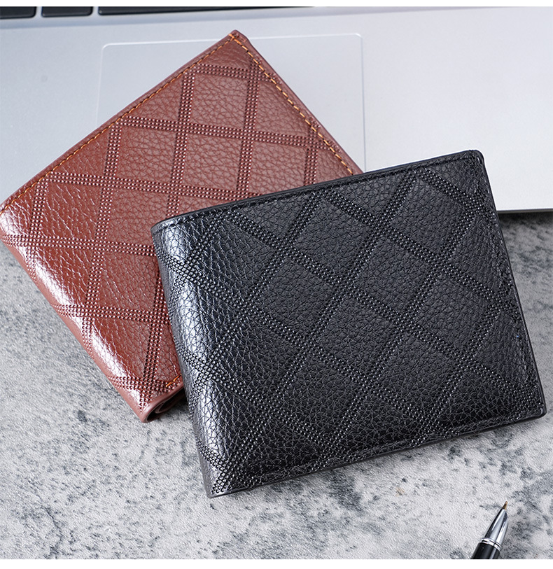 새로운 남성 지갑 남성용 짧은 지갑 청소년 패션 다이아몬드 격자 무늬 멀티 카드 홀더 대용량 동전 지갑 소프트 지갑