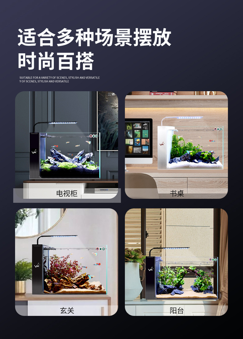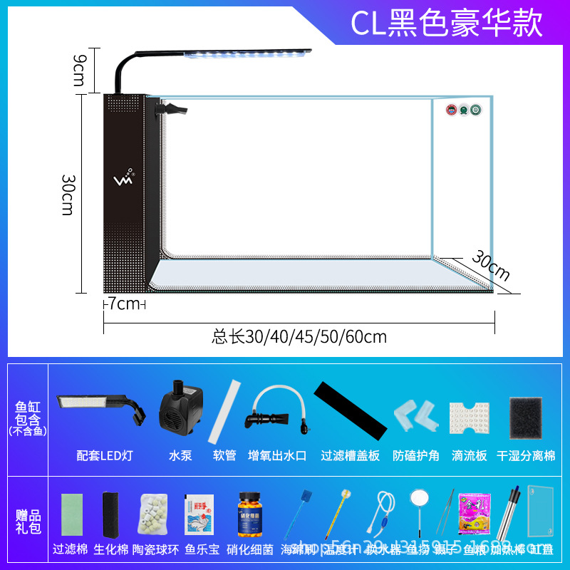 거실 가정용 작은 어항 슈퍼 화이트 사이드 필터 무료 물 변경 게으른 자기 순환 어항 생태 창조적 수족관