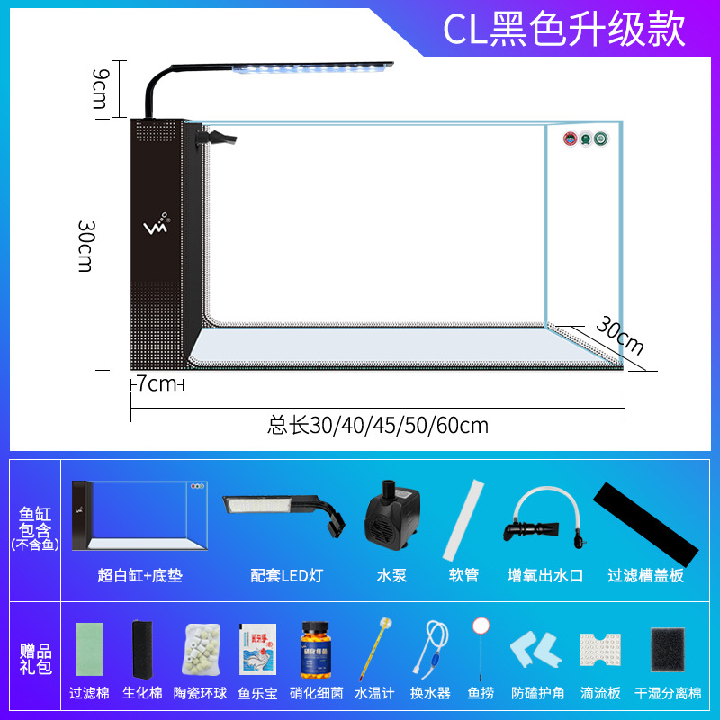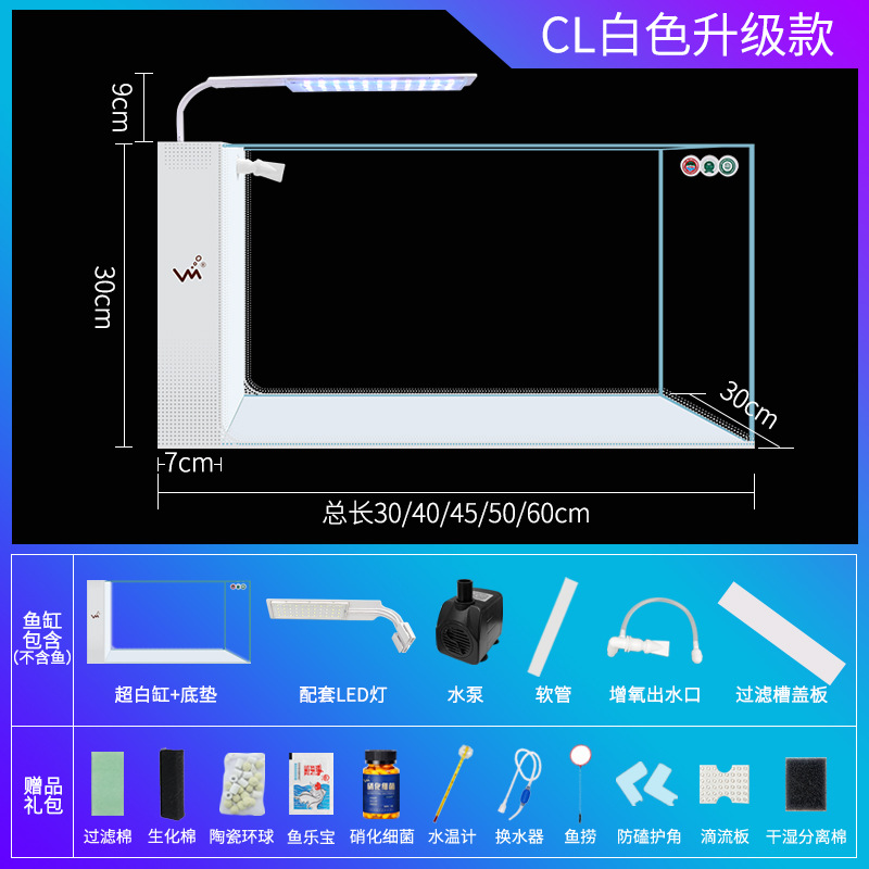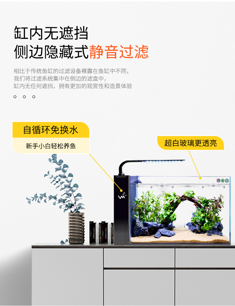 거실 가정용 작은 어항 슈퍼 화이트 사이드 필터 무료 물 변경 게으른 자기 순환 어항 생태 창조적 수족관스토어 가기