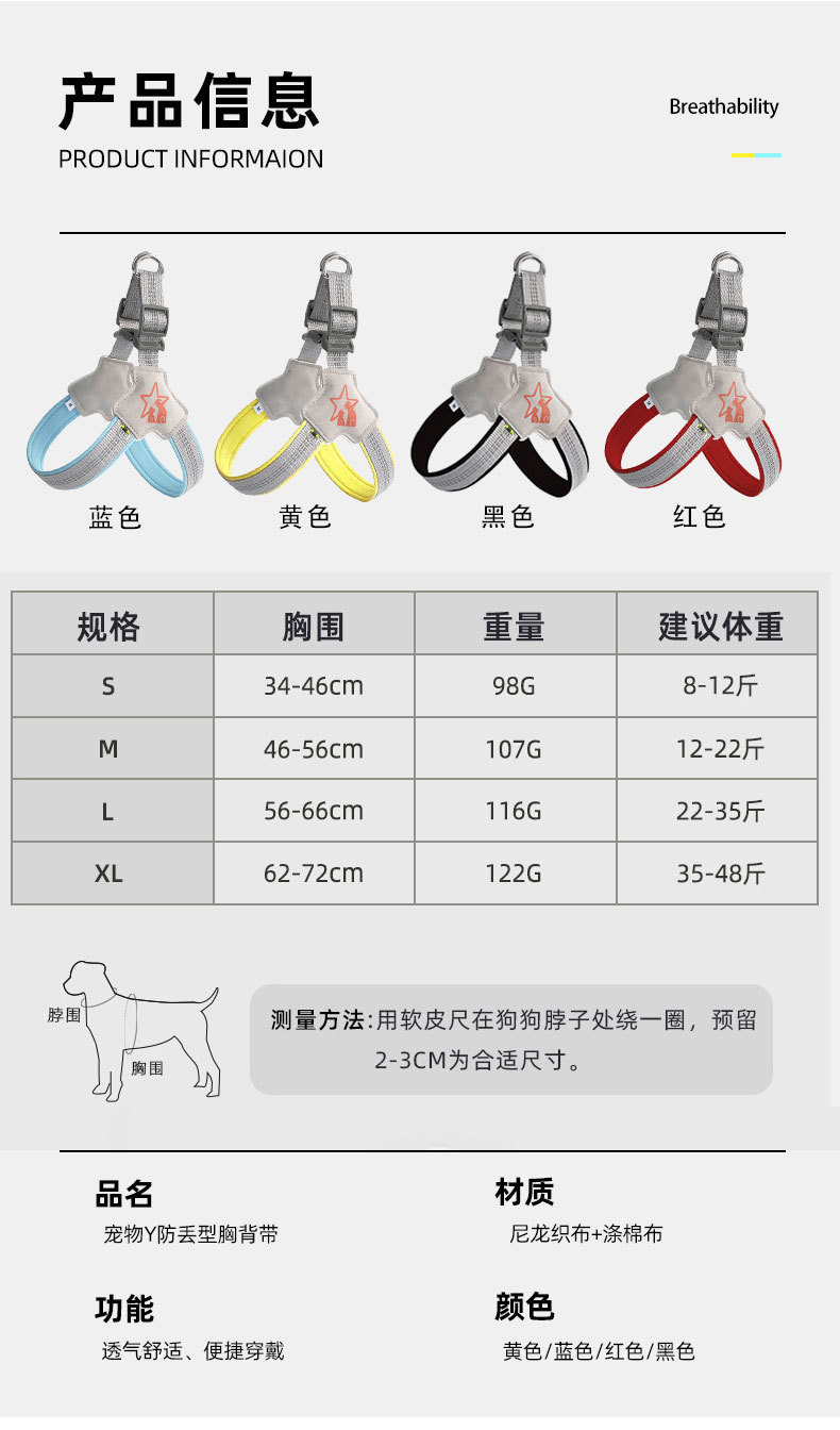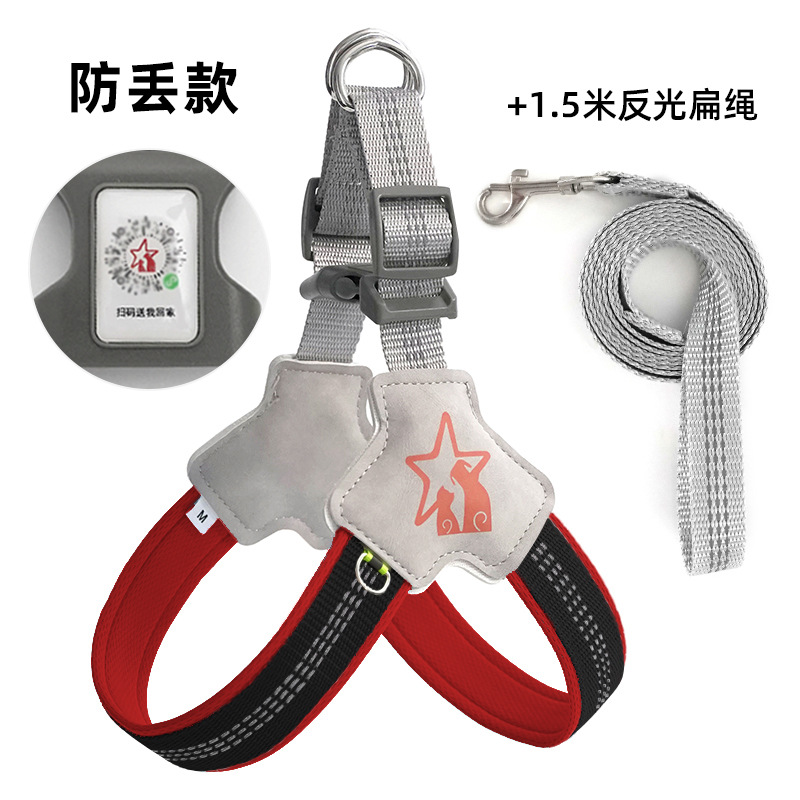 • [분실 방지] Y자 가슴 스트랩은 검정과 빨강 (1.5 m 반사 견인 로프 부착)