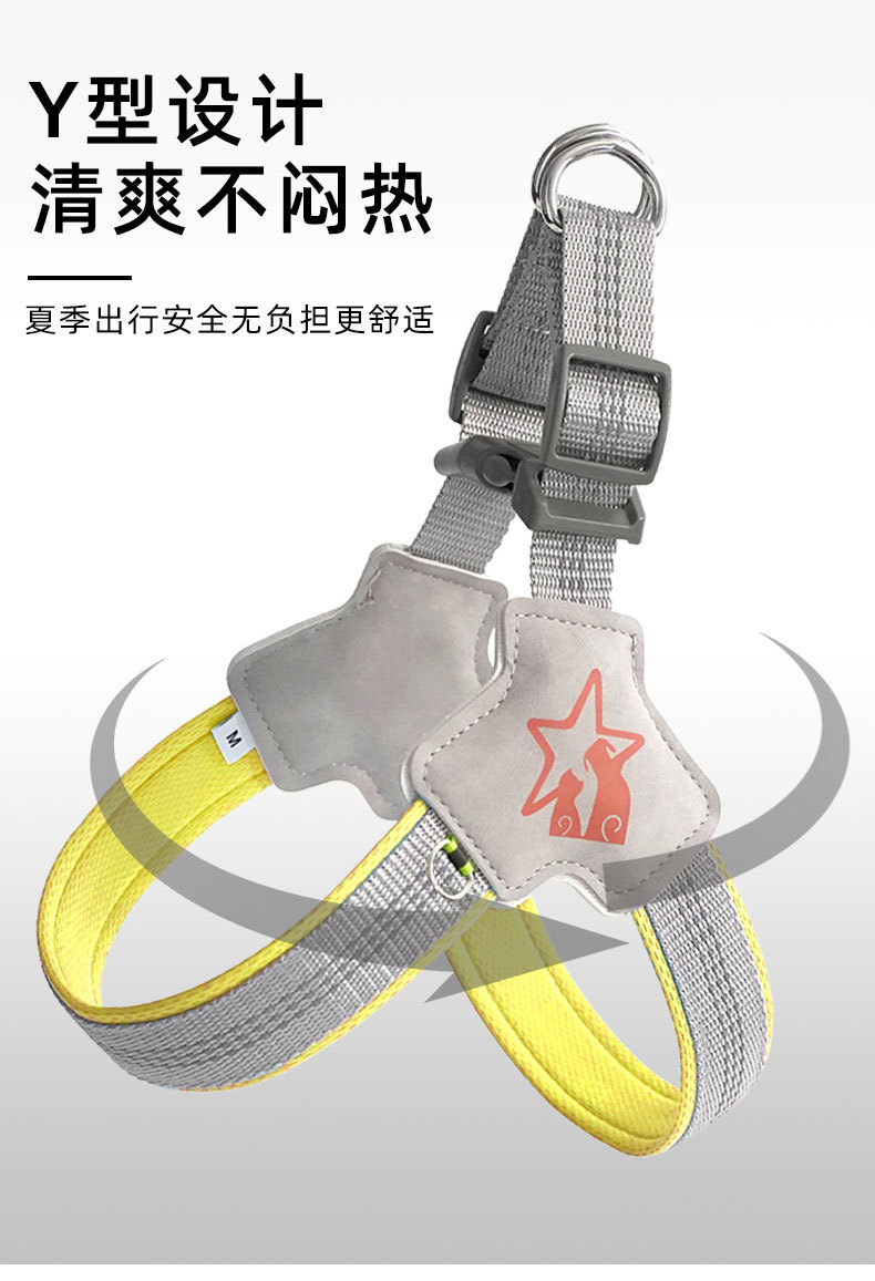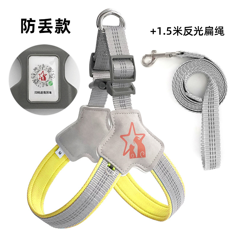 • [분실 방지] Y자 가슴 스트랩 옐로우 (1.5 m 반사 견인 로프 부착)