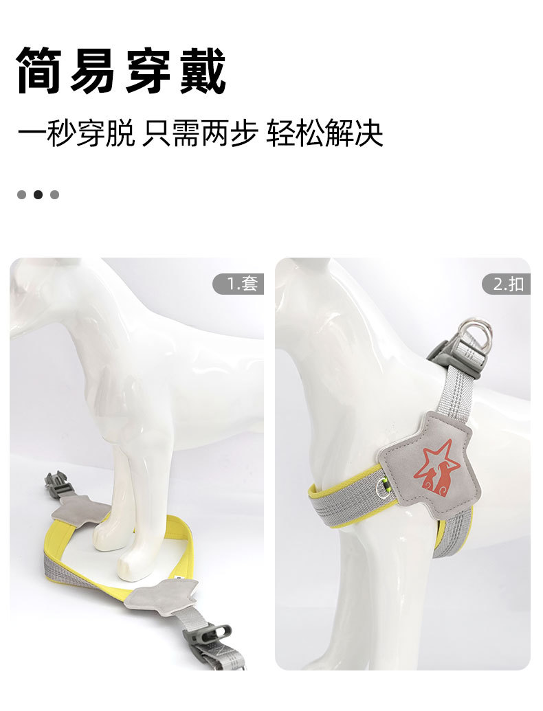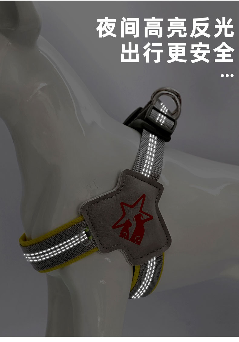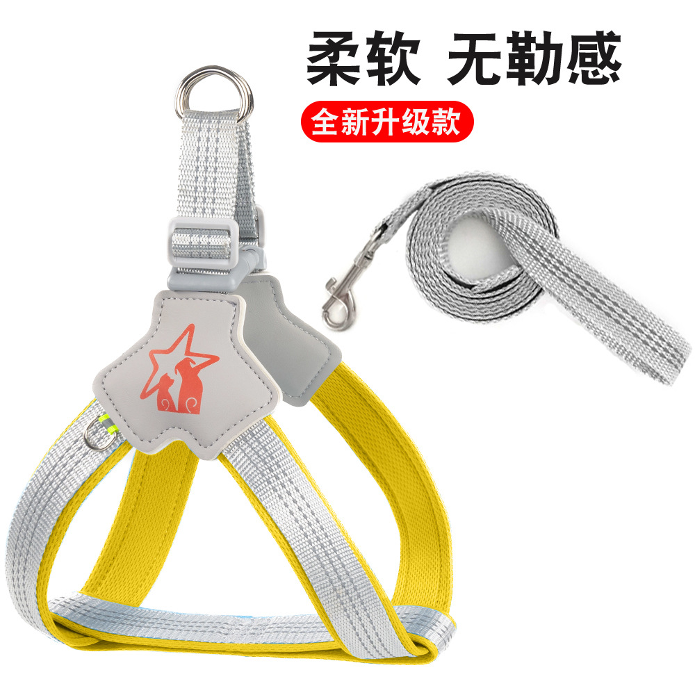 • Y자형 가슴 스트랩 노란색 (1.5 m 반사 견인 로프 포함)