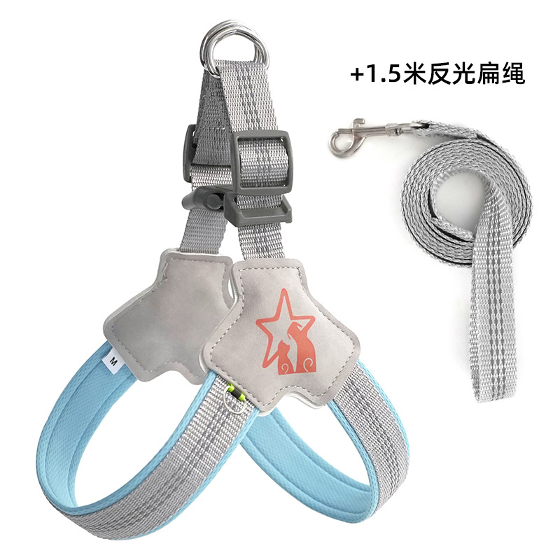 • Y자형 가슴 스트랩 블루 (1.5 m 반사 견인 로프 포함)