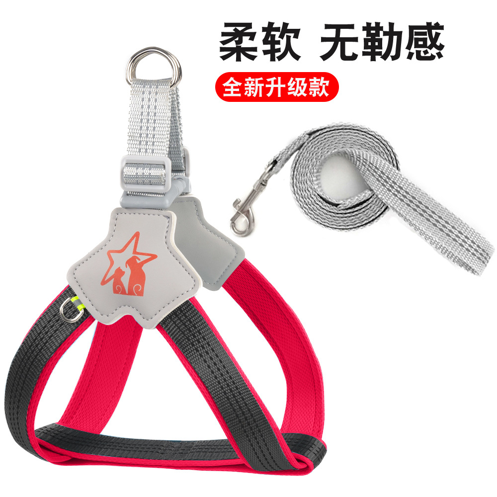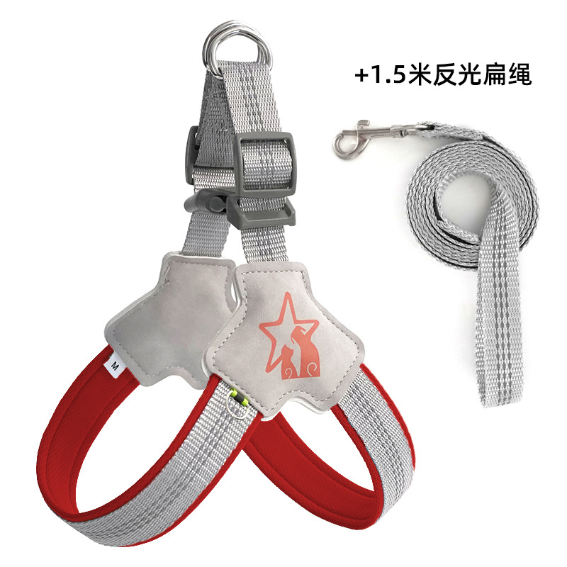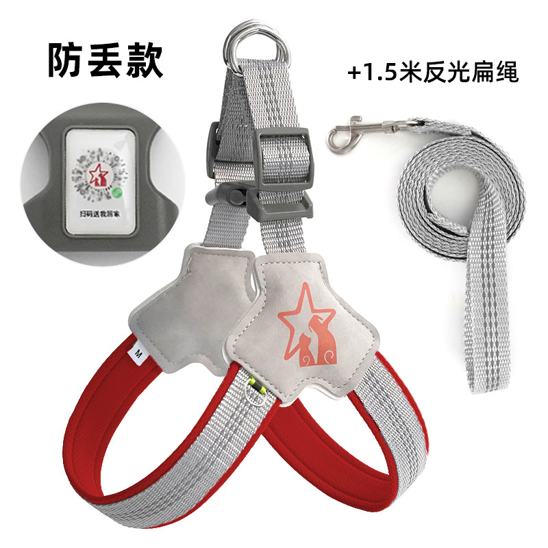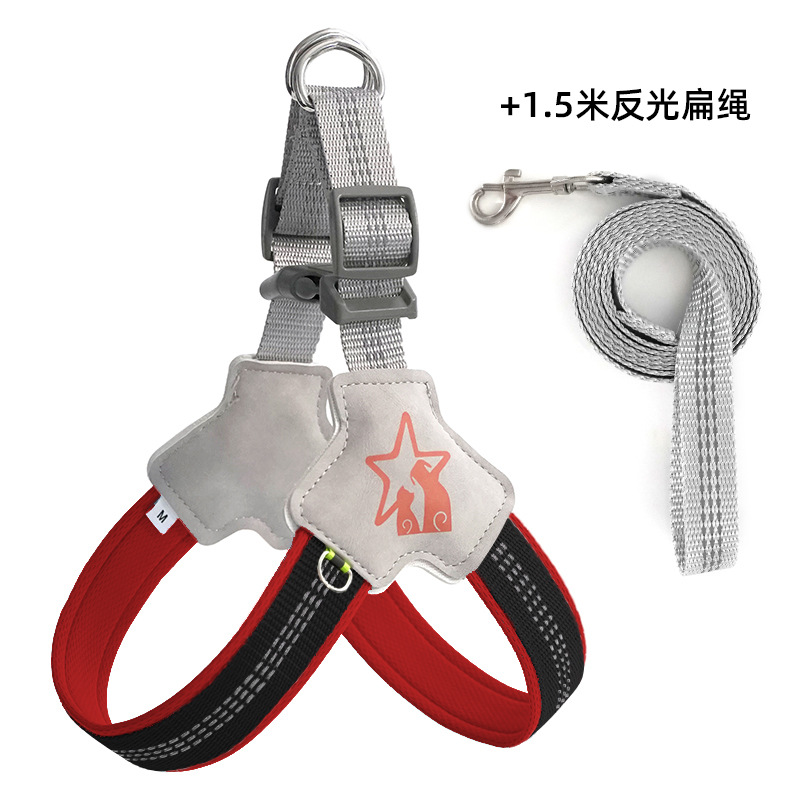 • [분실 방지] Y자 가슴 스트랩 레드 (1.5 m 반사 견인 로프 부착)