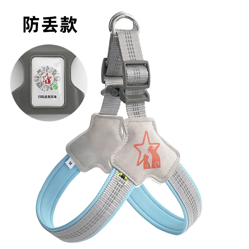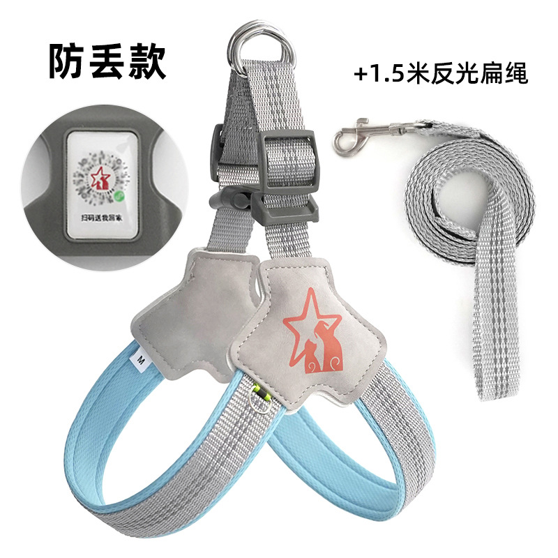 • [분실 방지] Y자 가슴 스트랩 블루 (1.5 m 반사 견인 로프 부착)