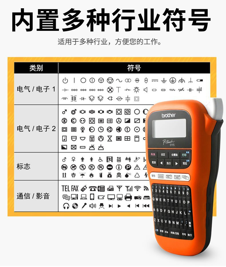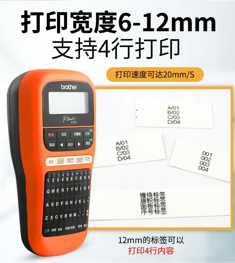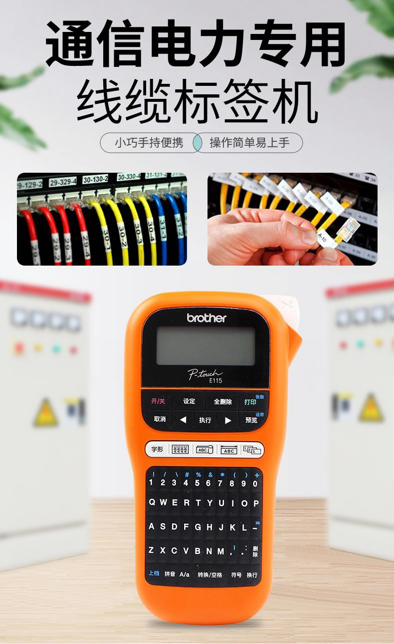브라더 라벨 프린터 PT-E115B 휴대용 소형 통신 전력선 케이블 스티커 프린터 D210 휴대용