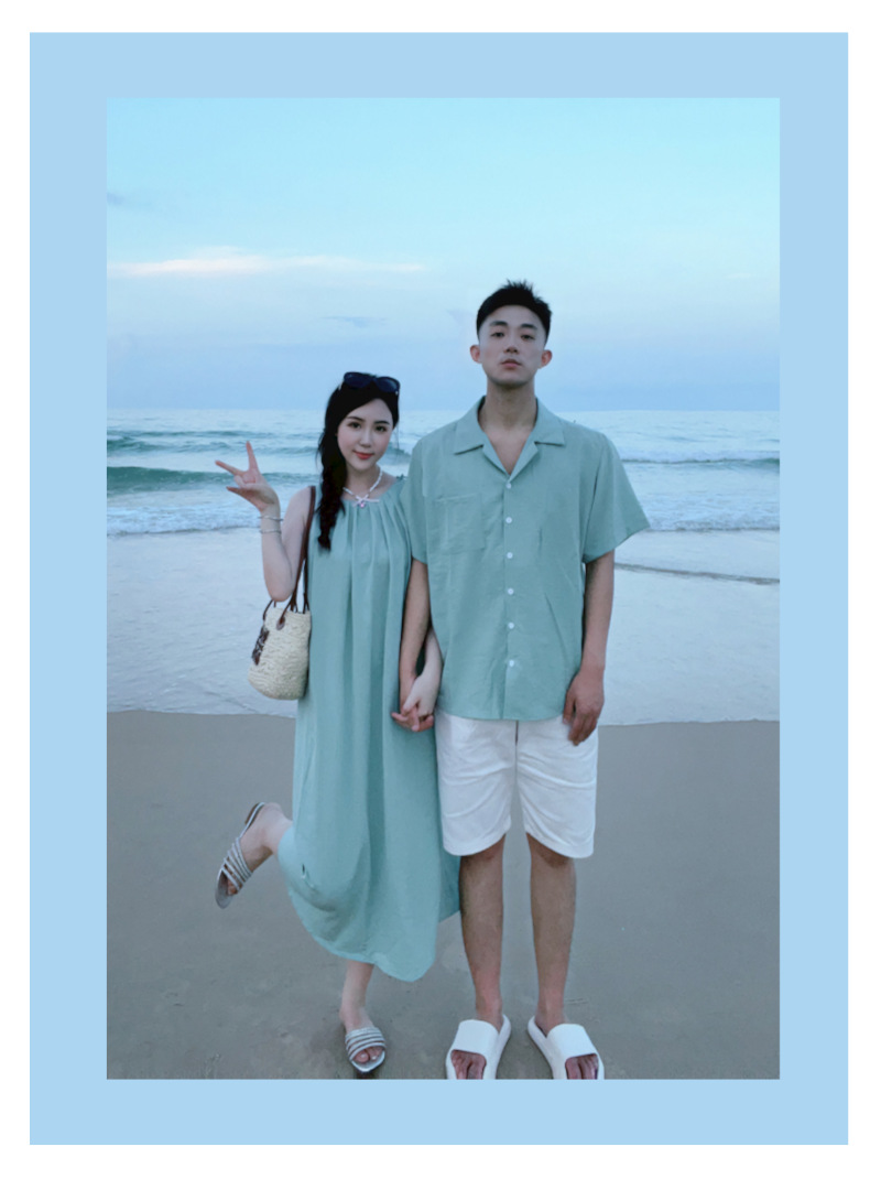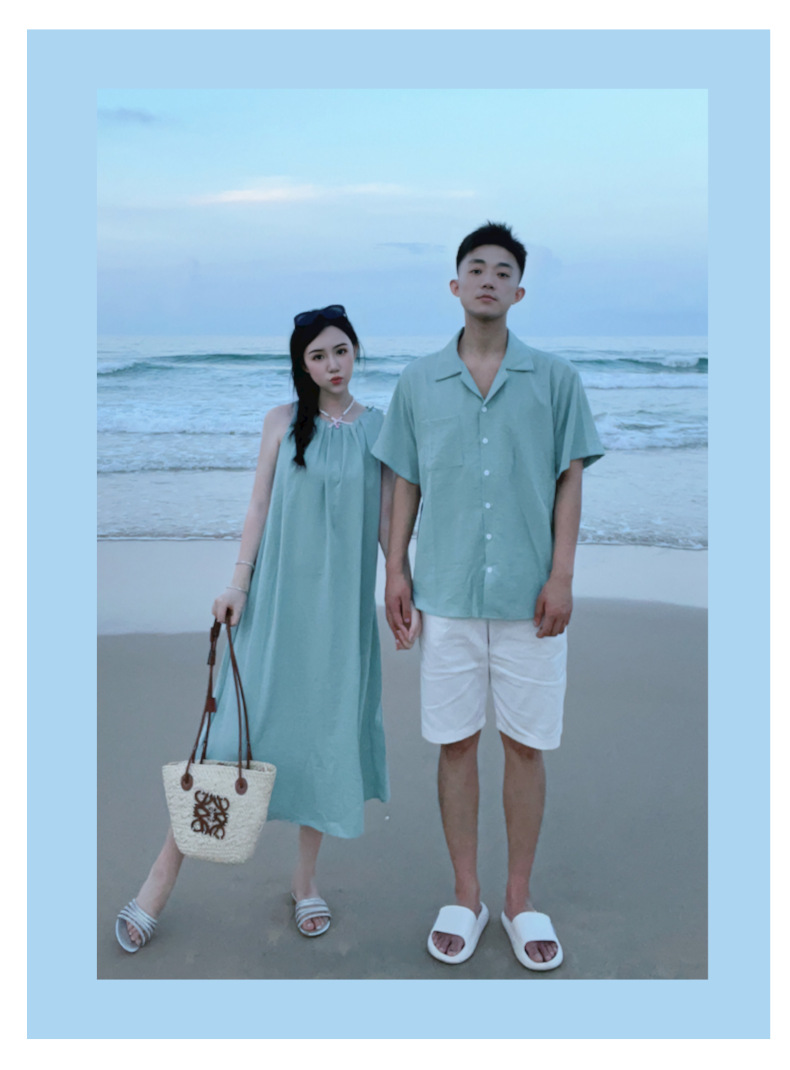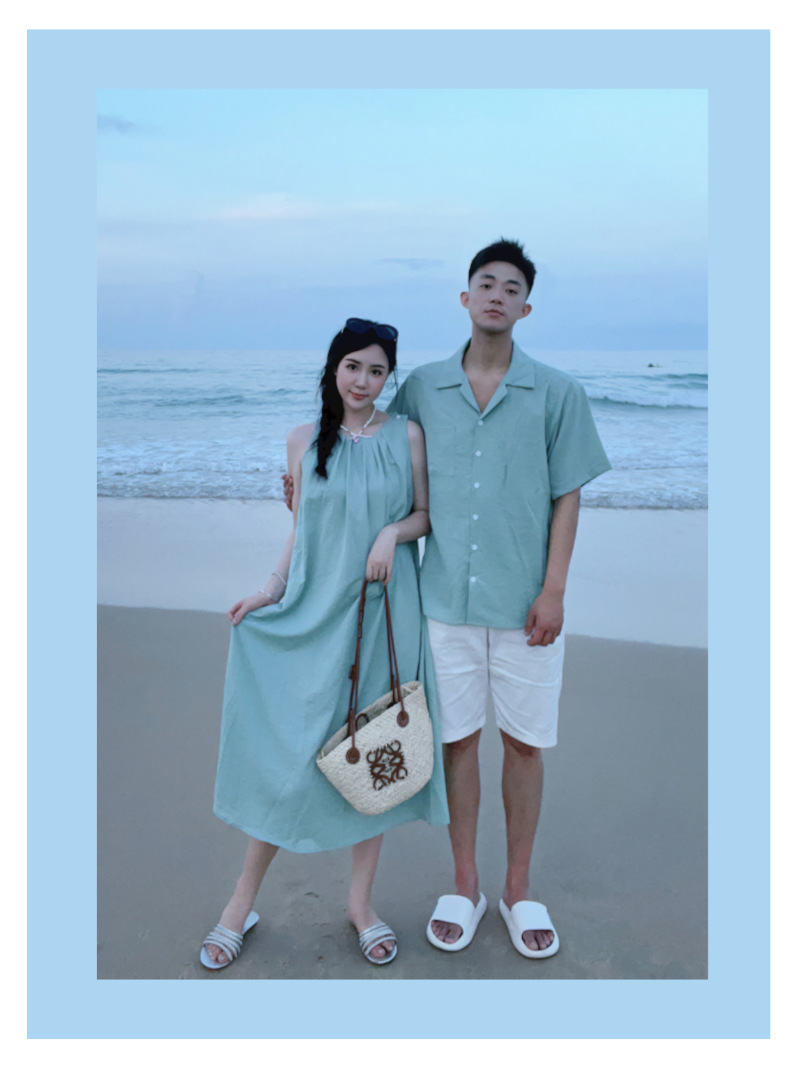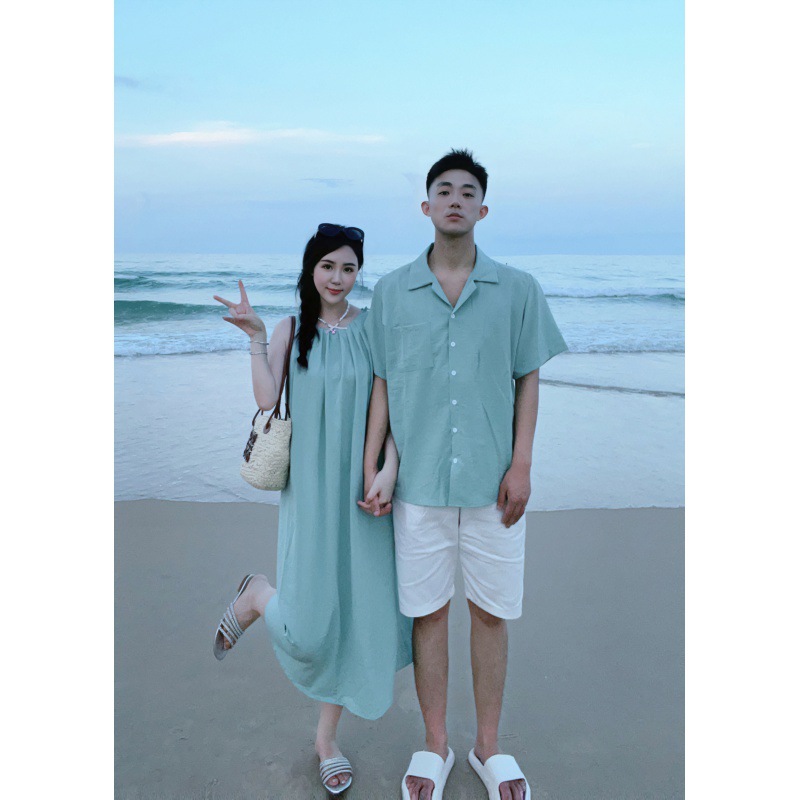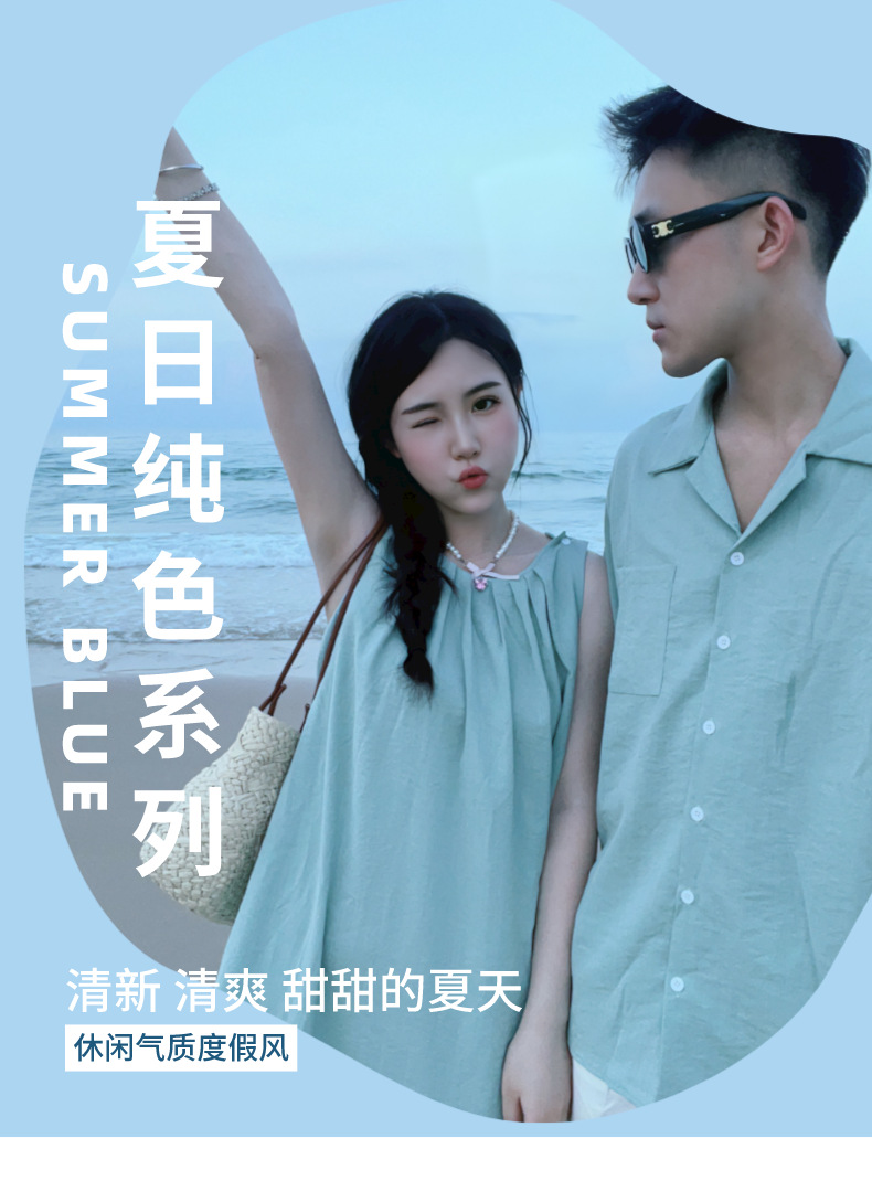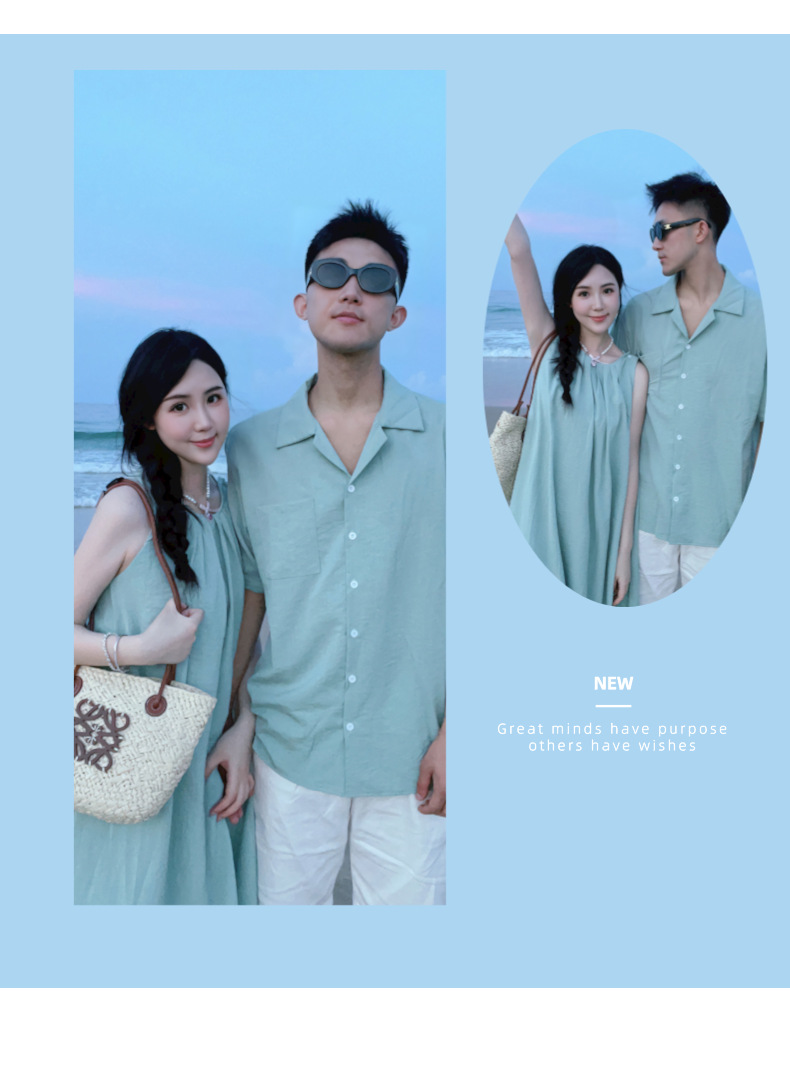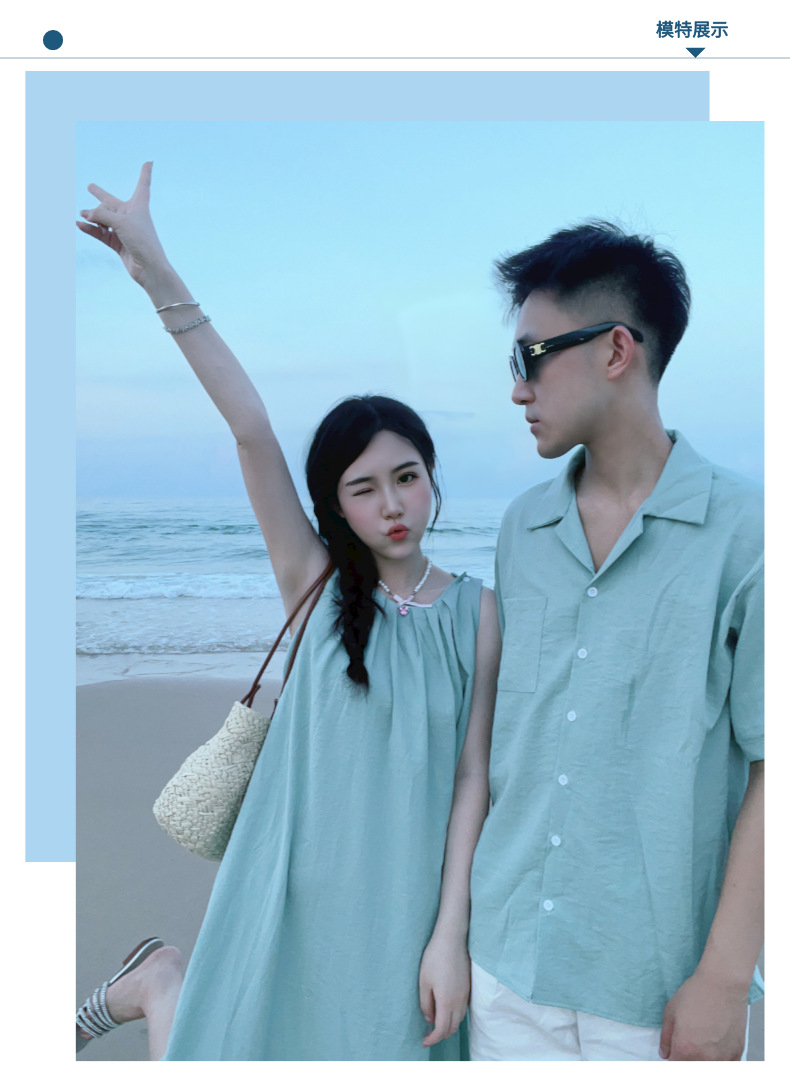 2023 여름 커플 의류 반팔 셔츠 해변 휴가 스타일 신선한 조끼 민소매 여성 원피스스토어 가기