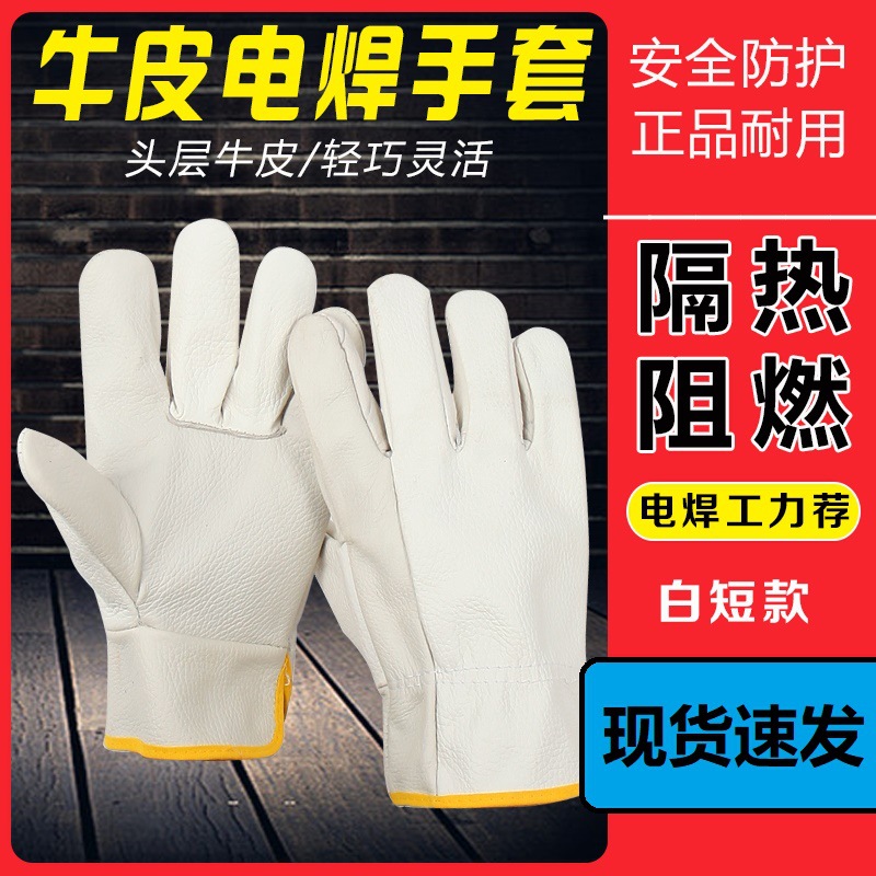 도매 소가죽 용접 장갑 헤드 레이어 소가죽 짧은 미끄럼 방지 내마모성 단열 난연성 용접 장갑스토어 가기