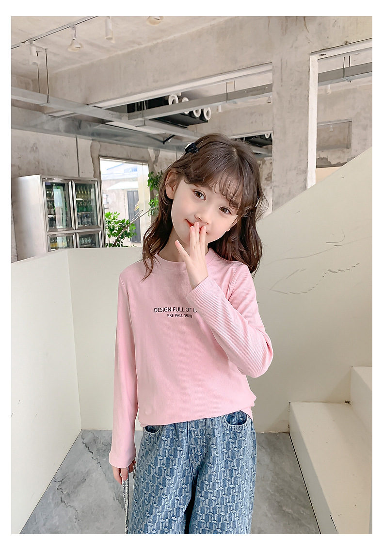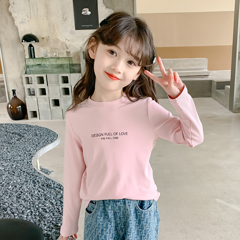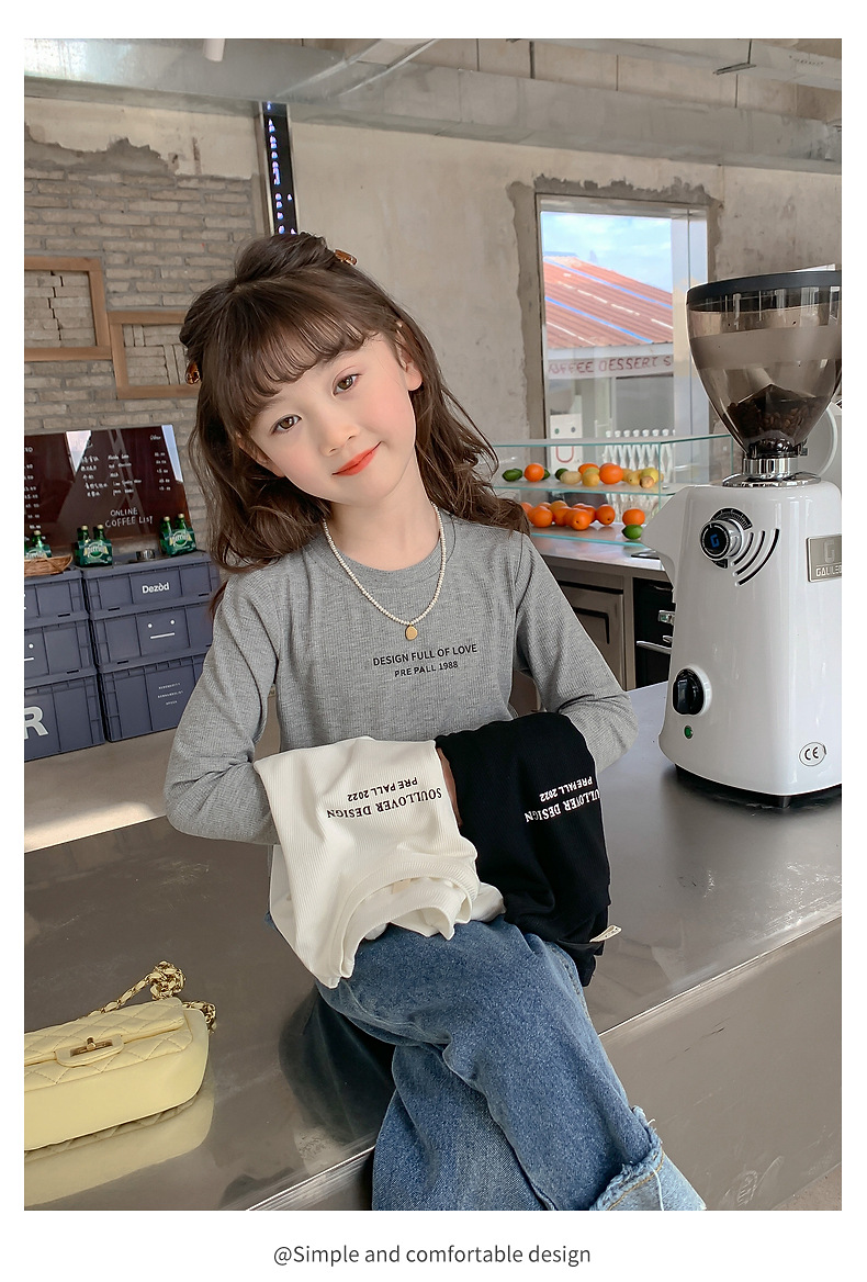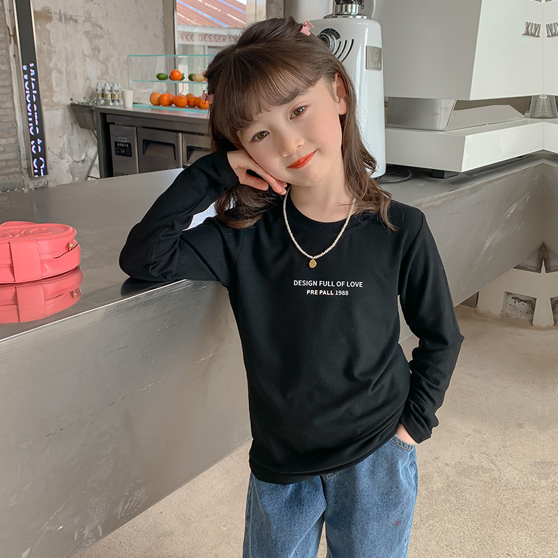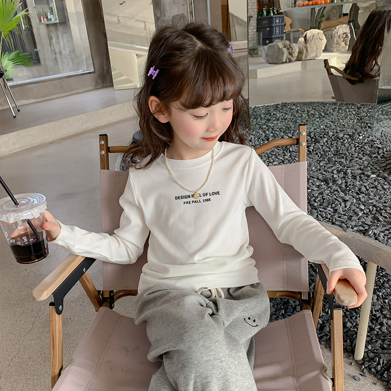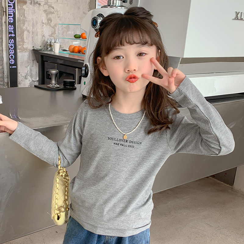 여자 바닥 셔츠 긴 소매 봄 가을 2022 새로운 어린이 한국어 편지 인쇄 라운드 넥 티셔츠 조수 아동 의류 도매