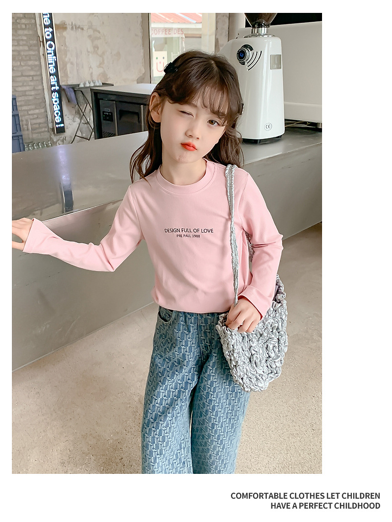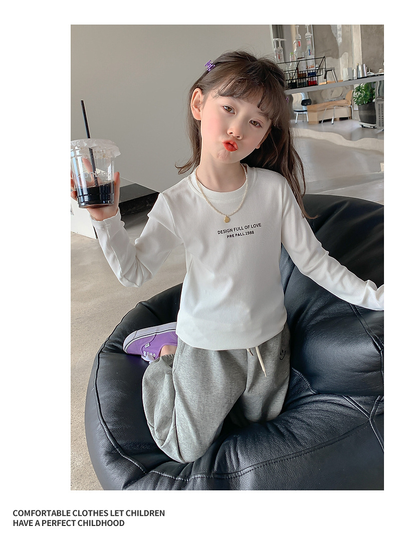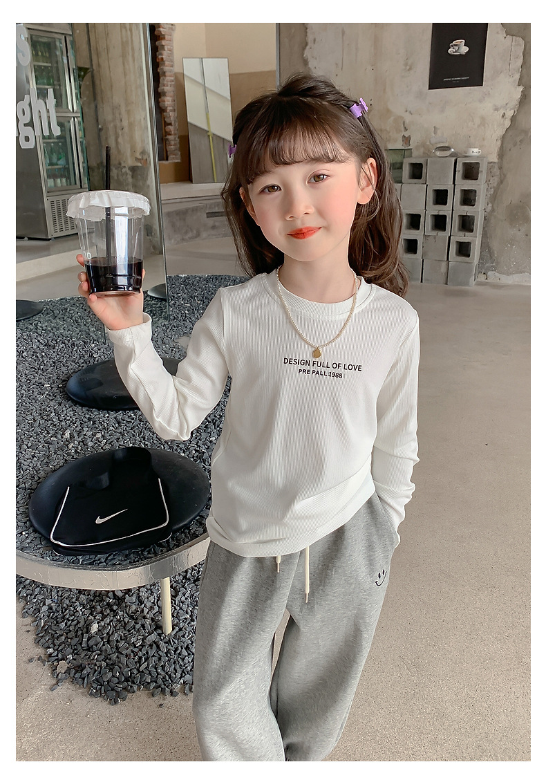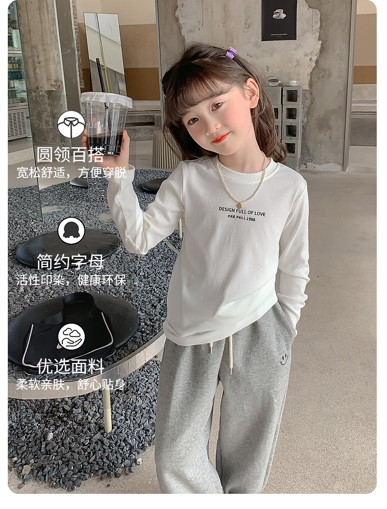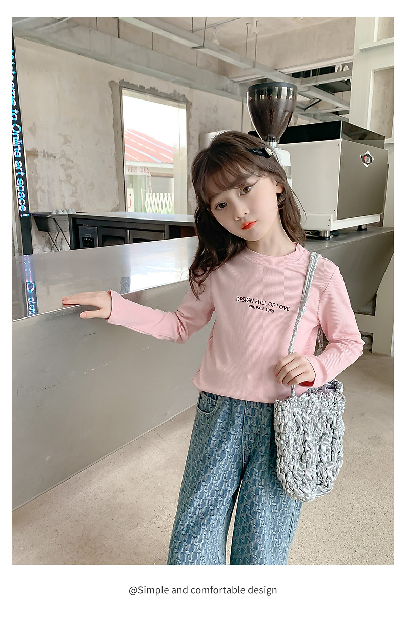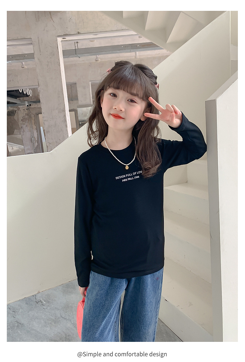 여자 바닥 셔츠 긴 소매 봄 가을 2022 새로운 어린이 한국어 편지 인쇄 라운드 넥 티셔츠 조수 아동 의류 도매
