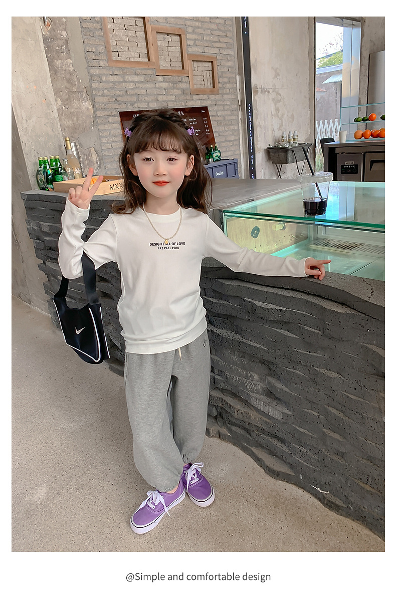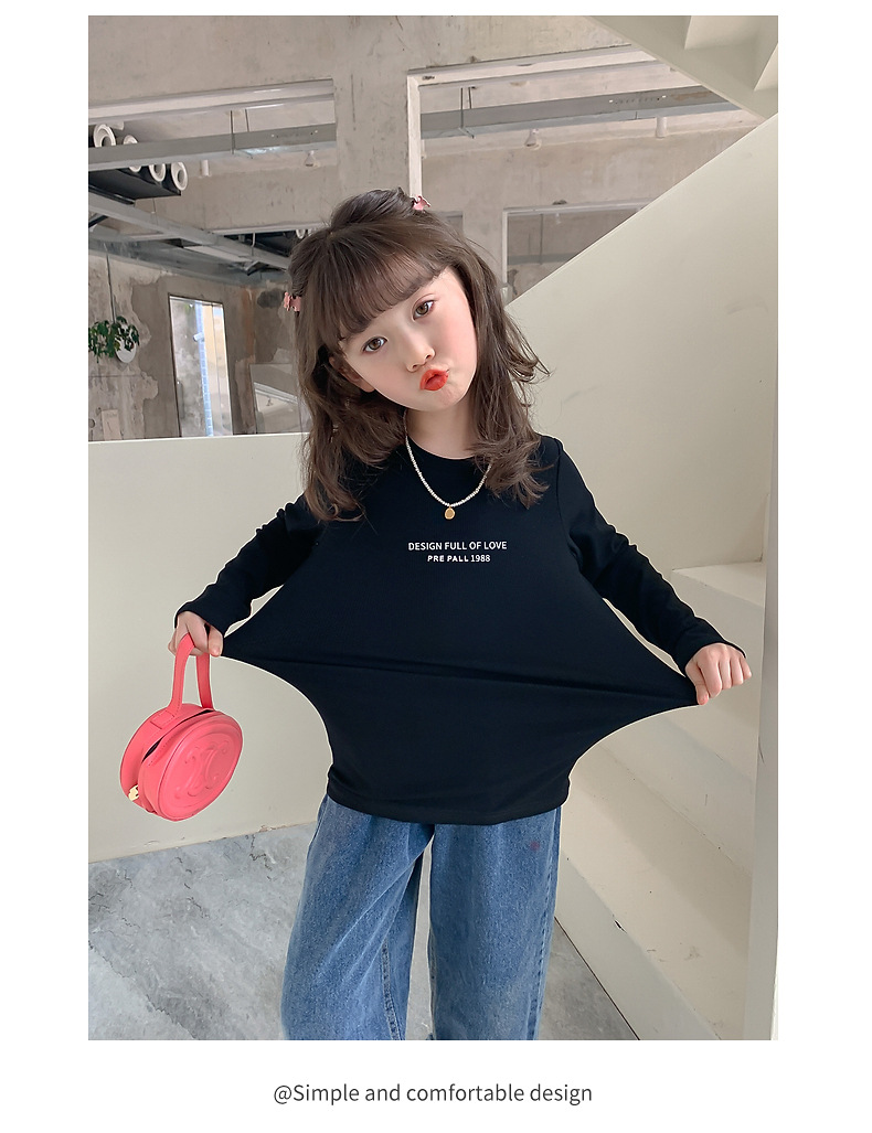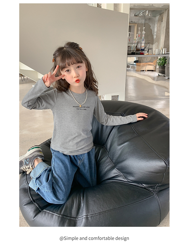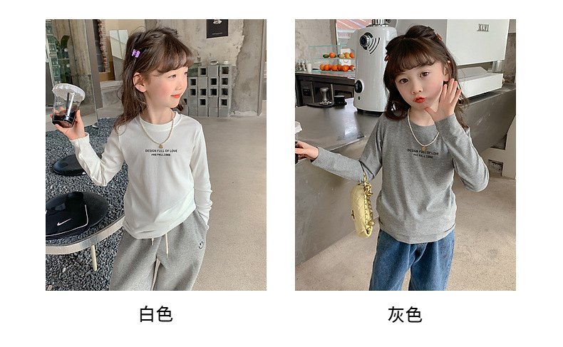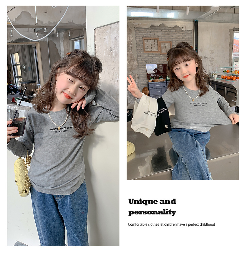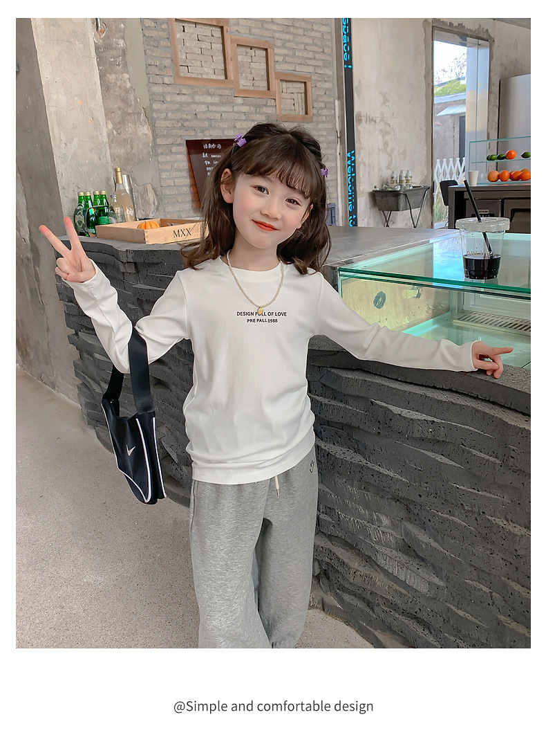 여자 바닥 셔츠 긴 소매 봄 가을 2022 새로운 어린이 한국어 편지 인쇄 라운드 넥 티셔츠 조수 아동 의류 도매