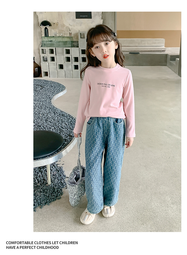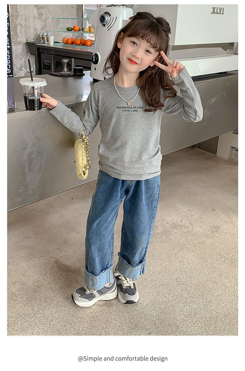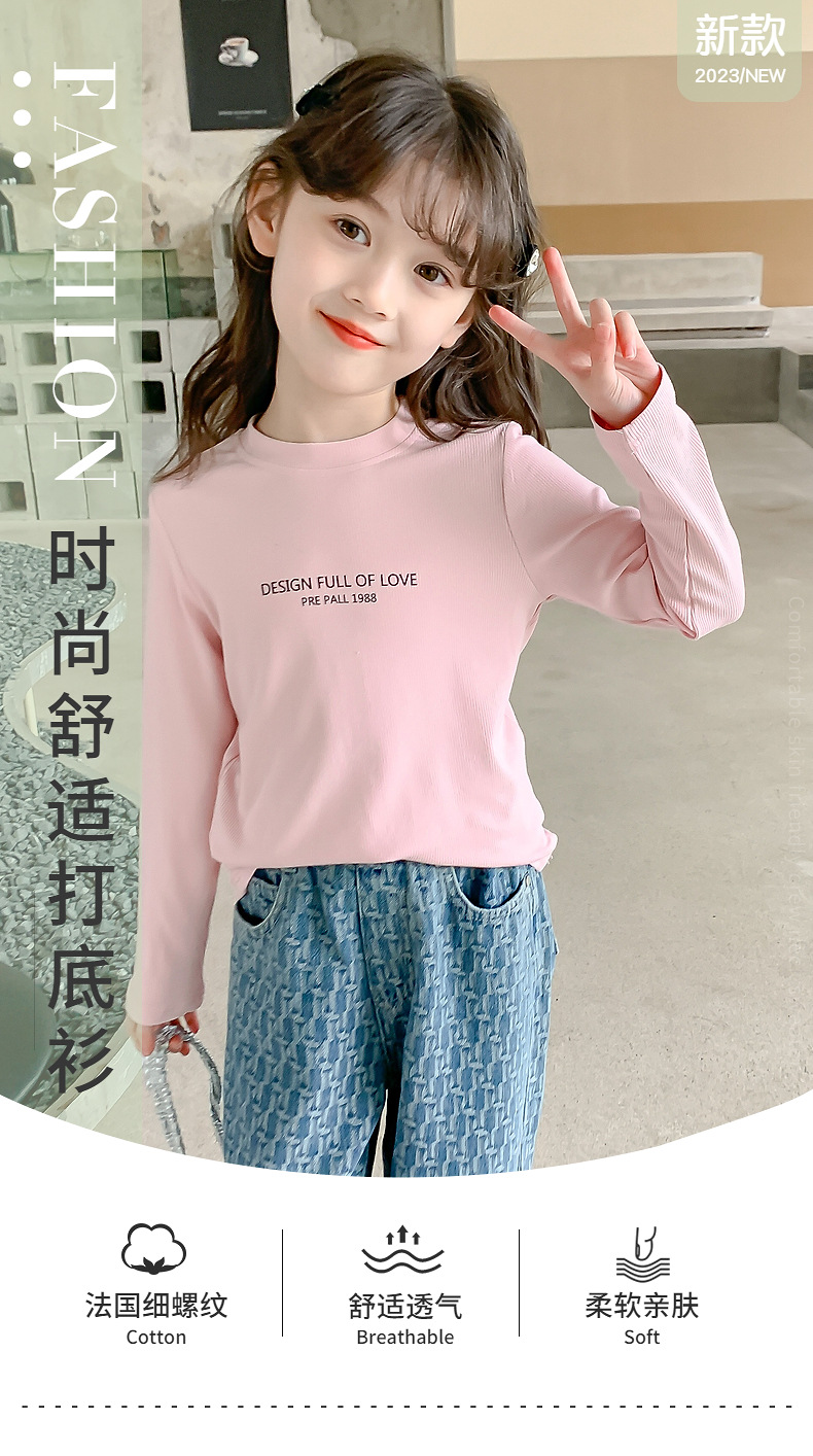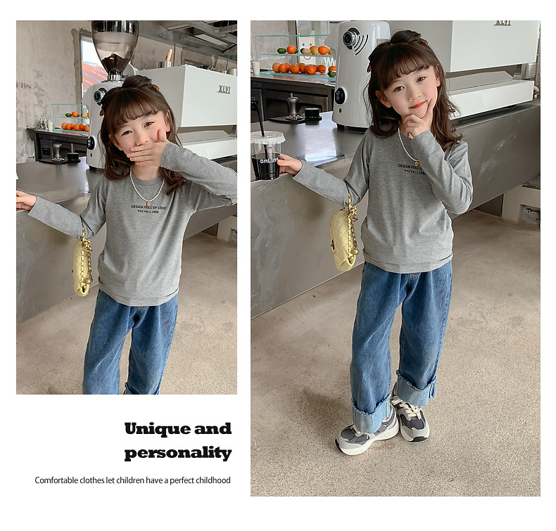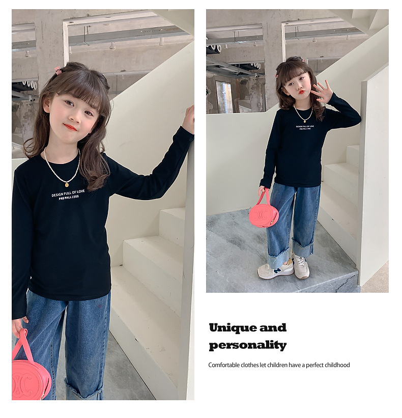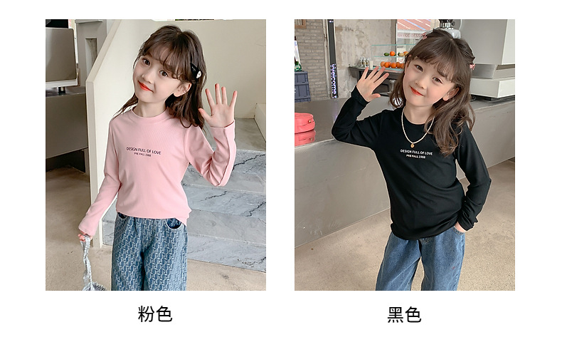 여자 바닥 셔츠 긴 소매 봄 가을 2022 새로운 어린이 한국어 편지 인쇄 라운드 넥 티셔츠 조수 아동 의류 도매
