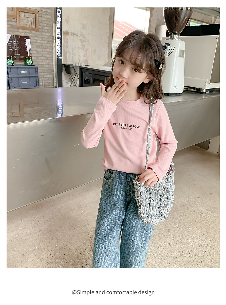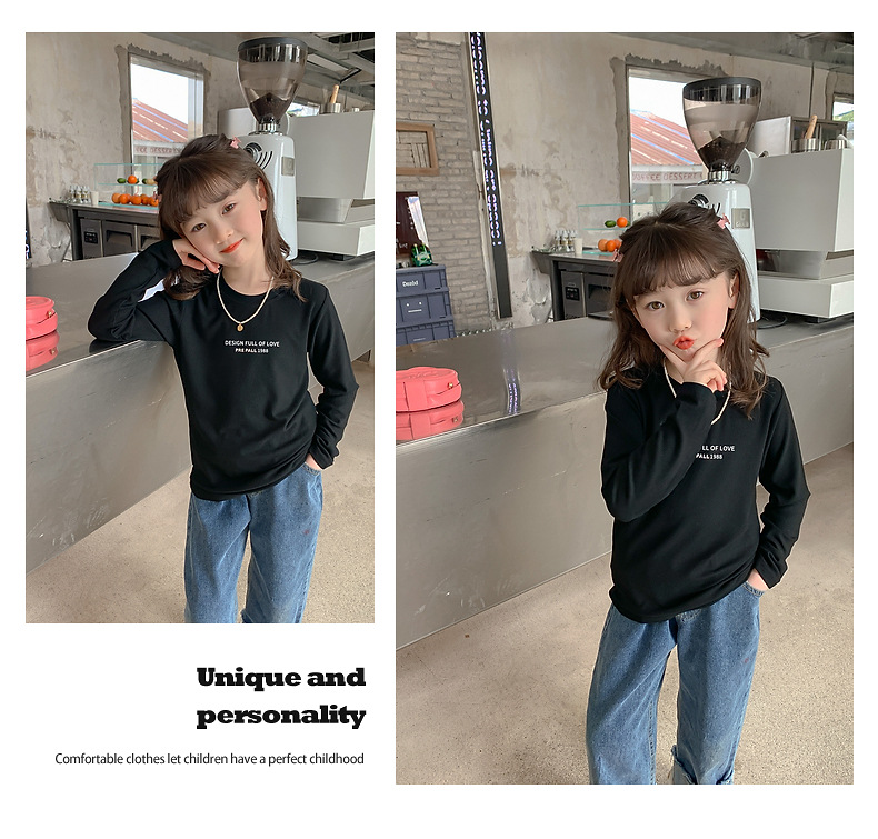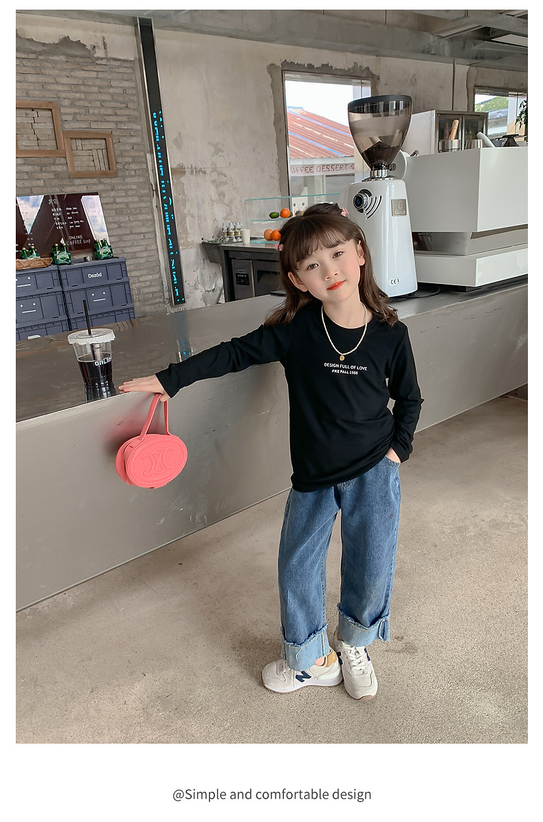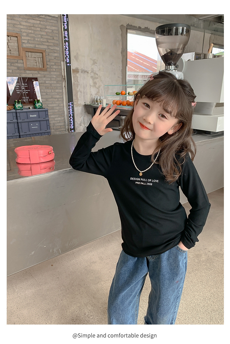 여자 바닥 셔츠 긴 소매 봄 가을 2022 새로운 어린이 한국어 편지 인쇄 라운드 넥 티셔츠 조수 아동 의류 도매스토어 가기