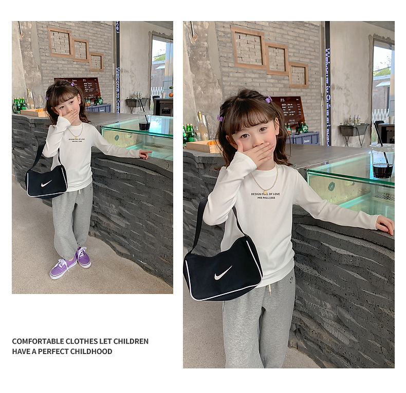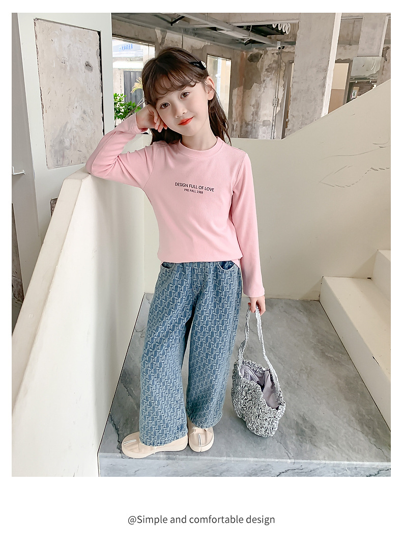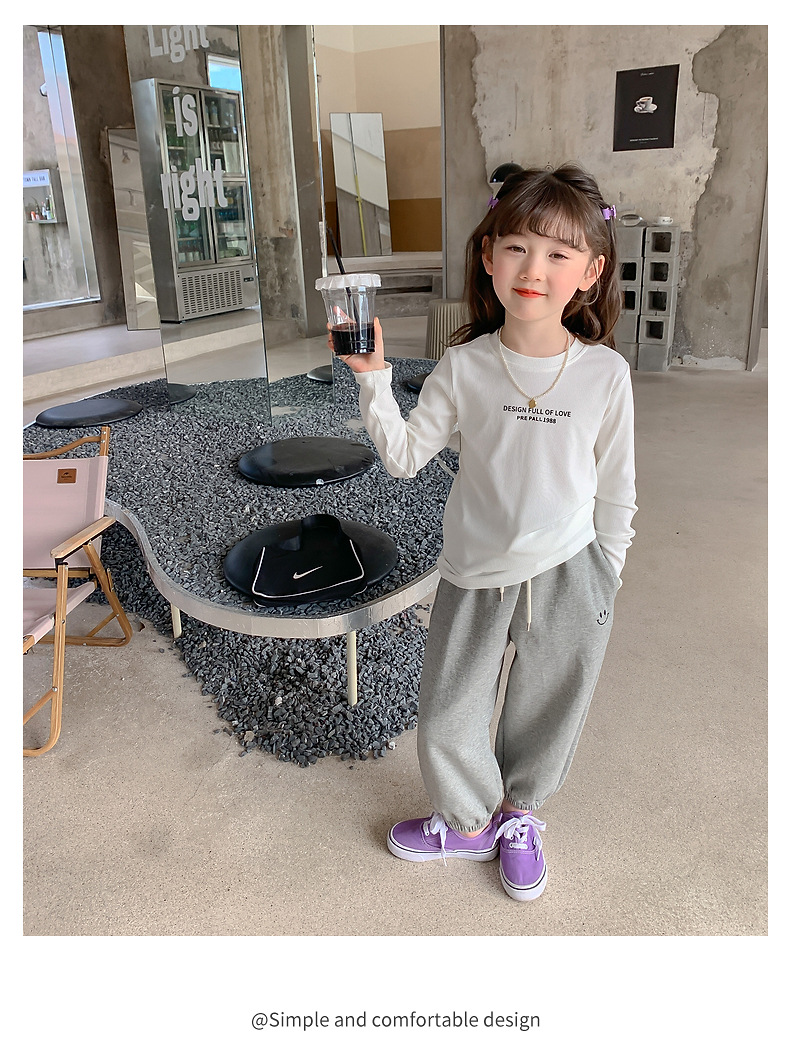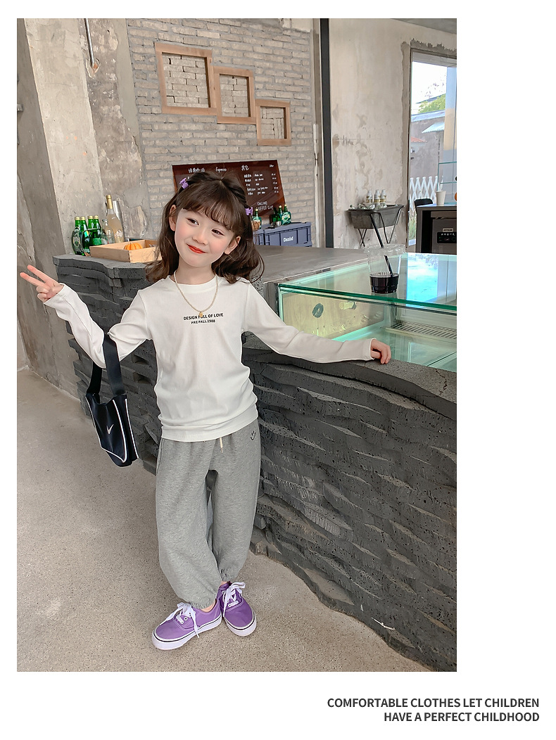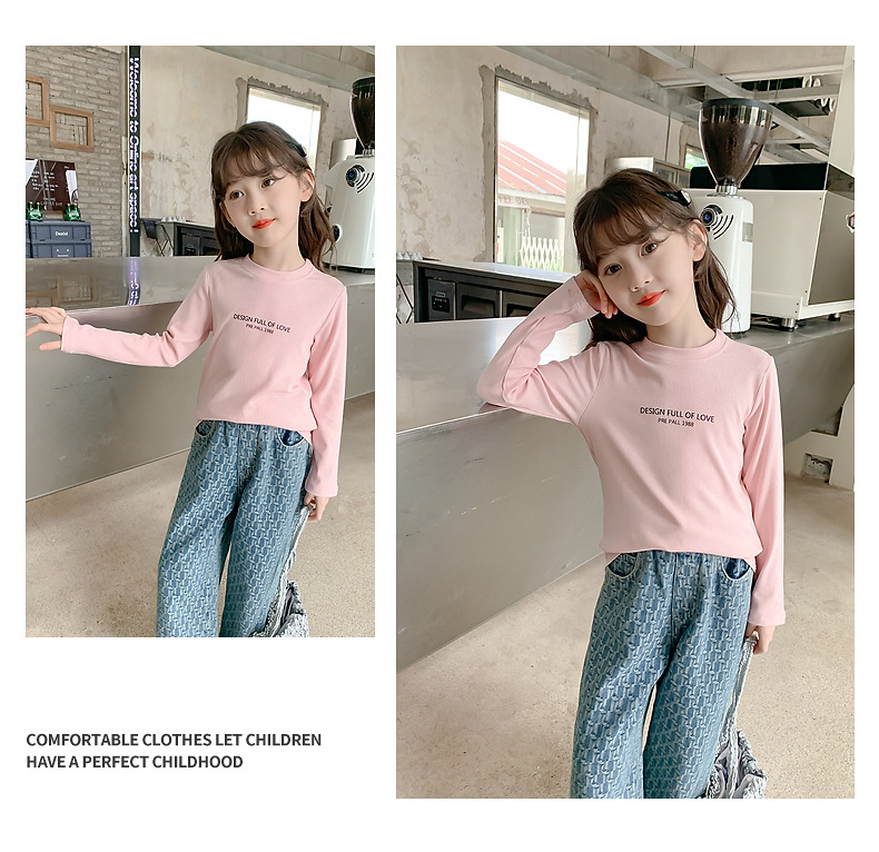 여자 바닥 셔츠 긴 소매 봄 가을 2022 새로운 어린이 한국어 편지 인쇄 라운드 넥 티셔츠 조수 아동 의류 도매스토어 가기