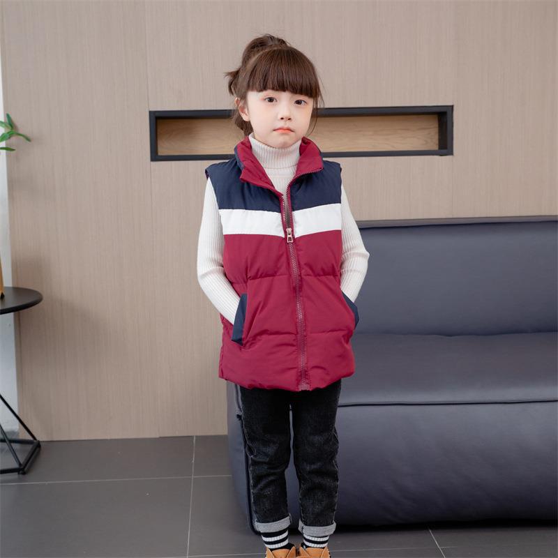 소년과 소녀를위한 어린이 다운 코튼 조끼 가을과 겨울 색상 매칭 아기 따뜻한 조끼 대학 스타일 유치원 조끼