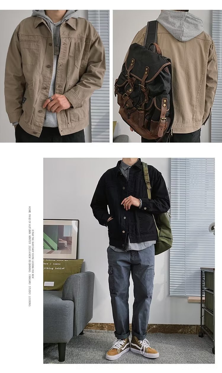 봄과 가을 캐주얼 바지 재킷 남자의 복고풍 데님 재킷 남자의 미국 스타일 남자의 최고 유행 느슨한 외투스토어 가기