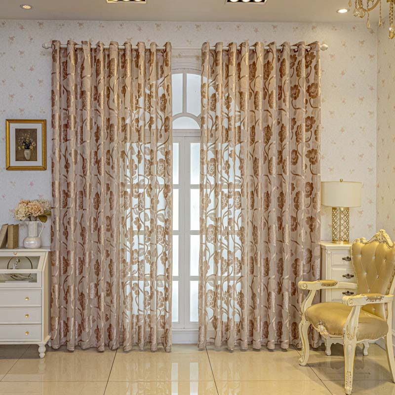 미국 목가적 인 자카드 꽃 스크린 커튼 거실 침실 발코니 국경 아마존 유럽 중공 반 음영