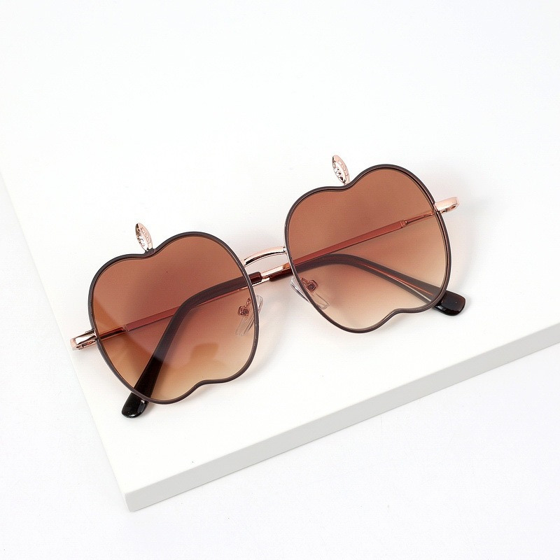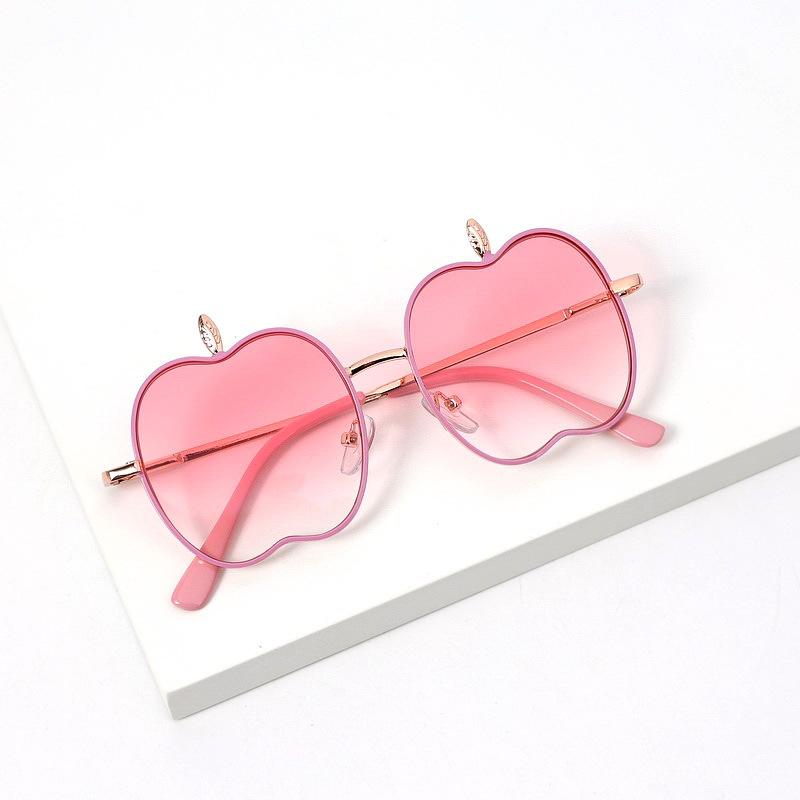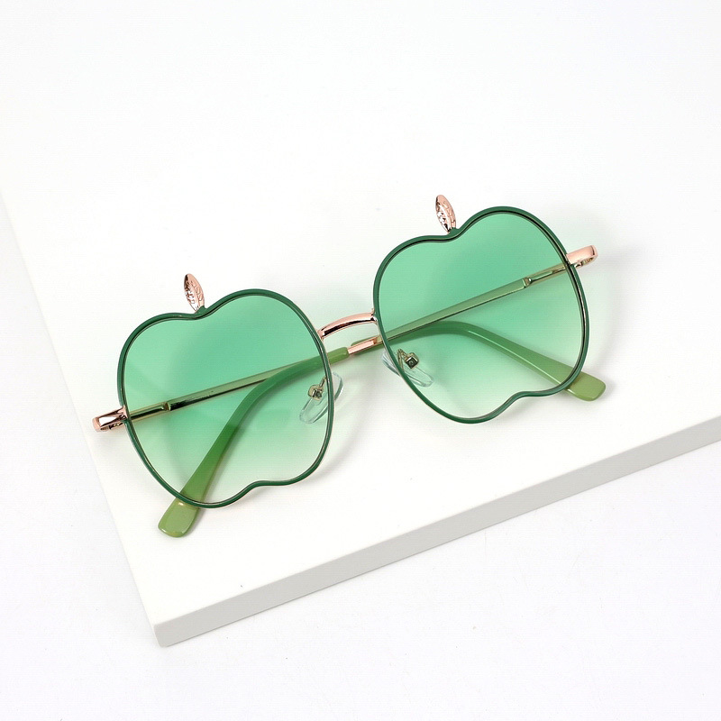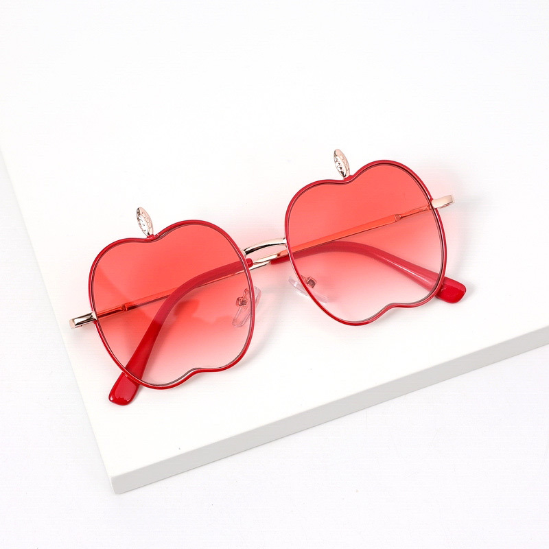 糖果色儿童太阳镜金属框彩色海洋镜片防紫外线苹果造型时尚墨镜潮