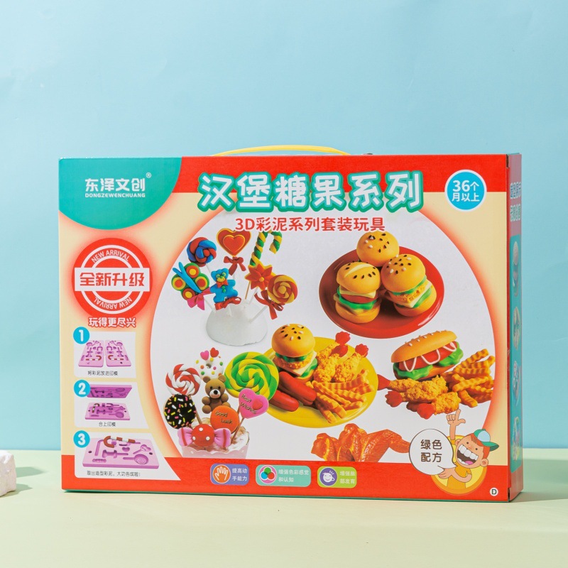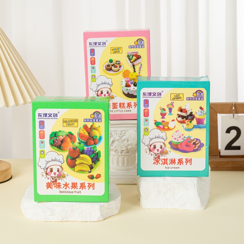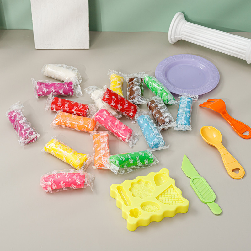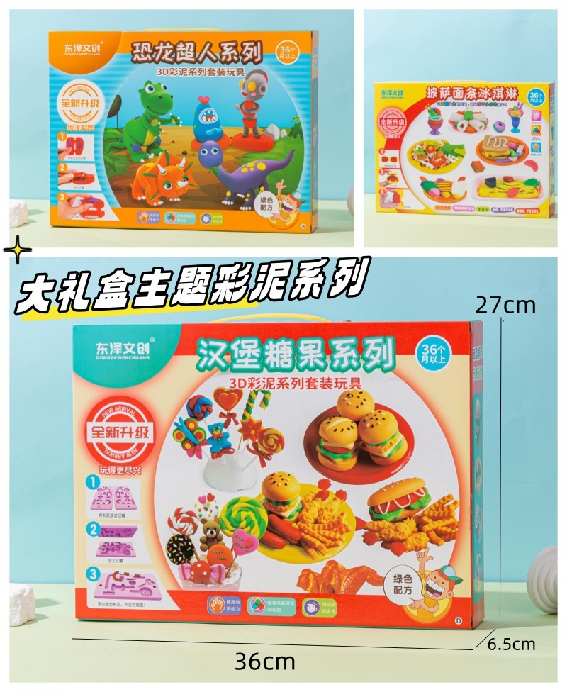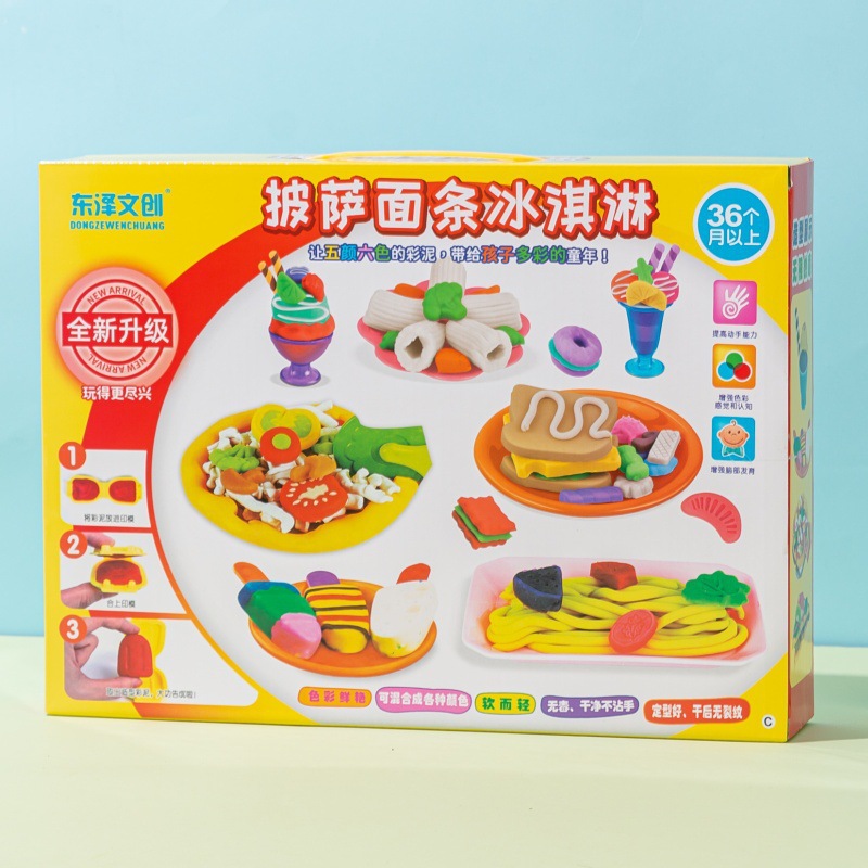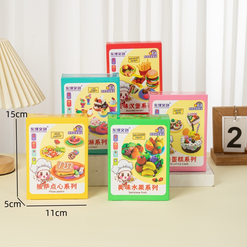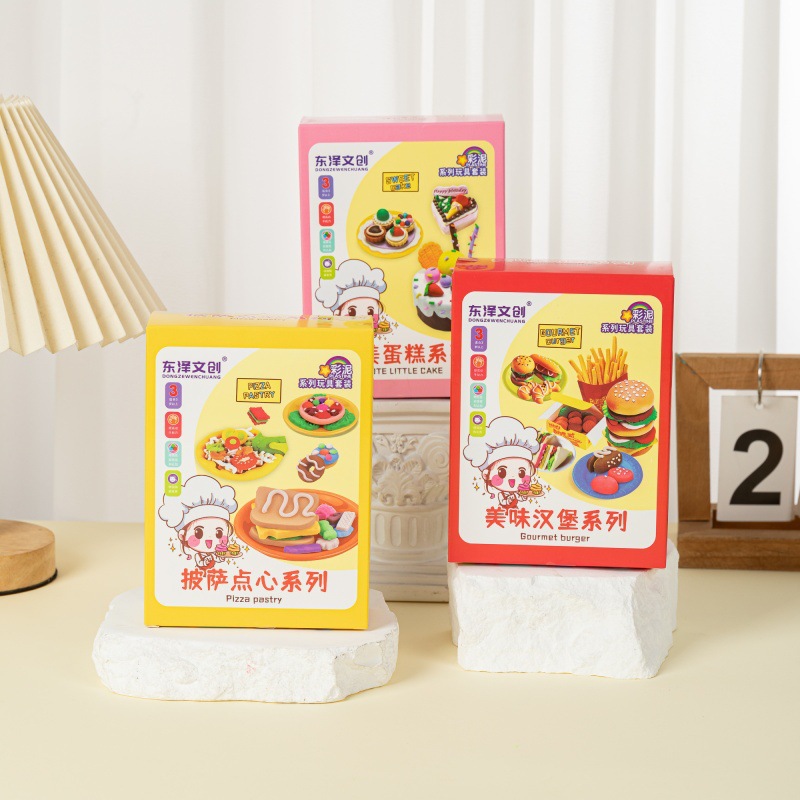 어린이 테마 색상 진흙 서양 음식 과자 도구 세트 시리즈 3D 시뮬레이션 식품 피자 DIY 컬러 진흙 장난감스토어 가기