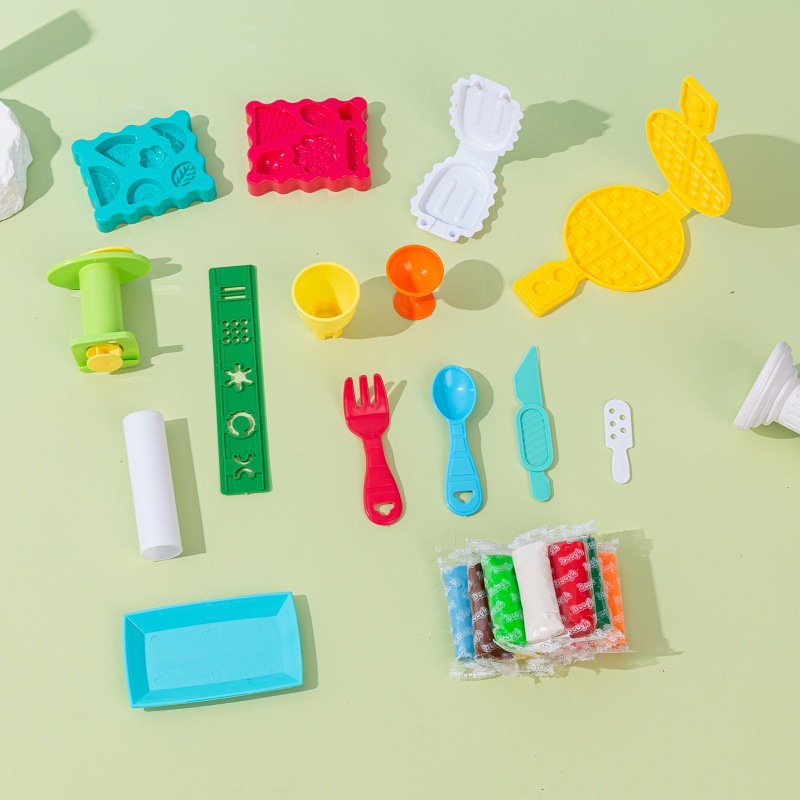 어린이 테마 색상 진흙 서양 음식 과자 도구 세트 시리즈 3D 시뮬레이션 식품 피자 DIY 컬러 진흙 장난감