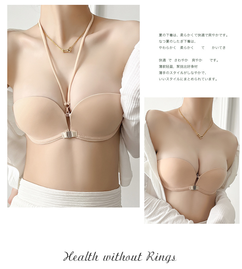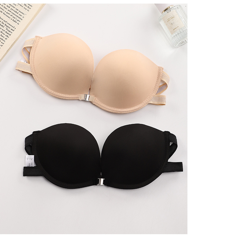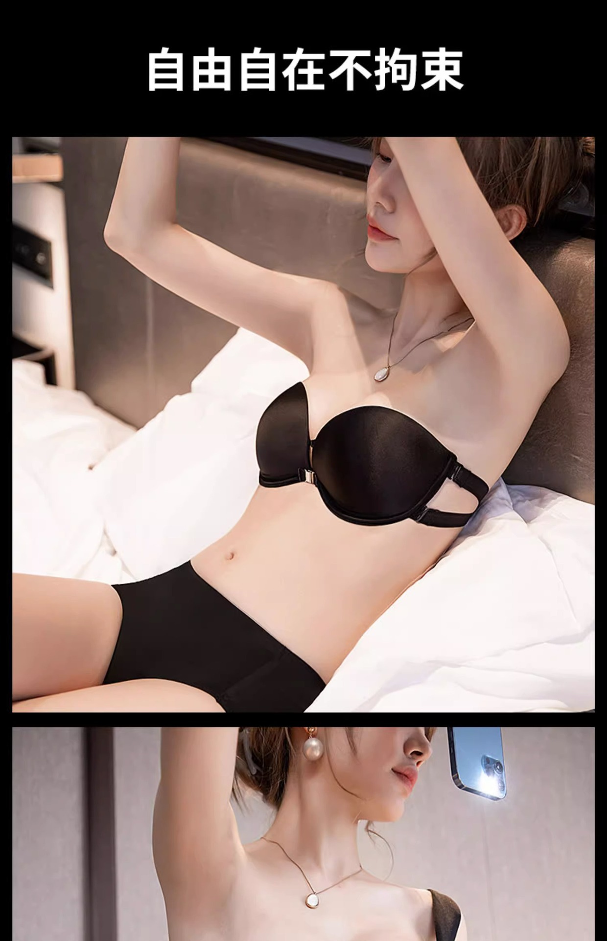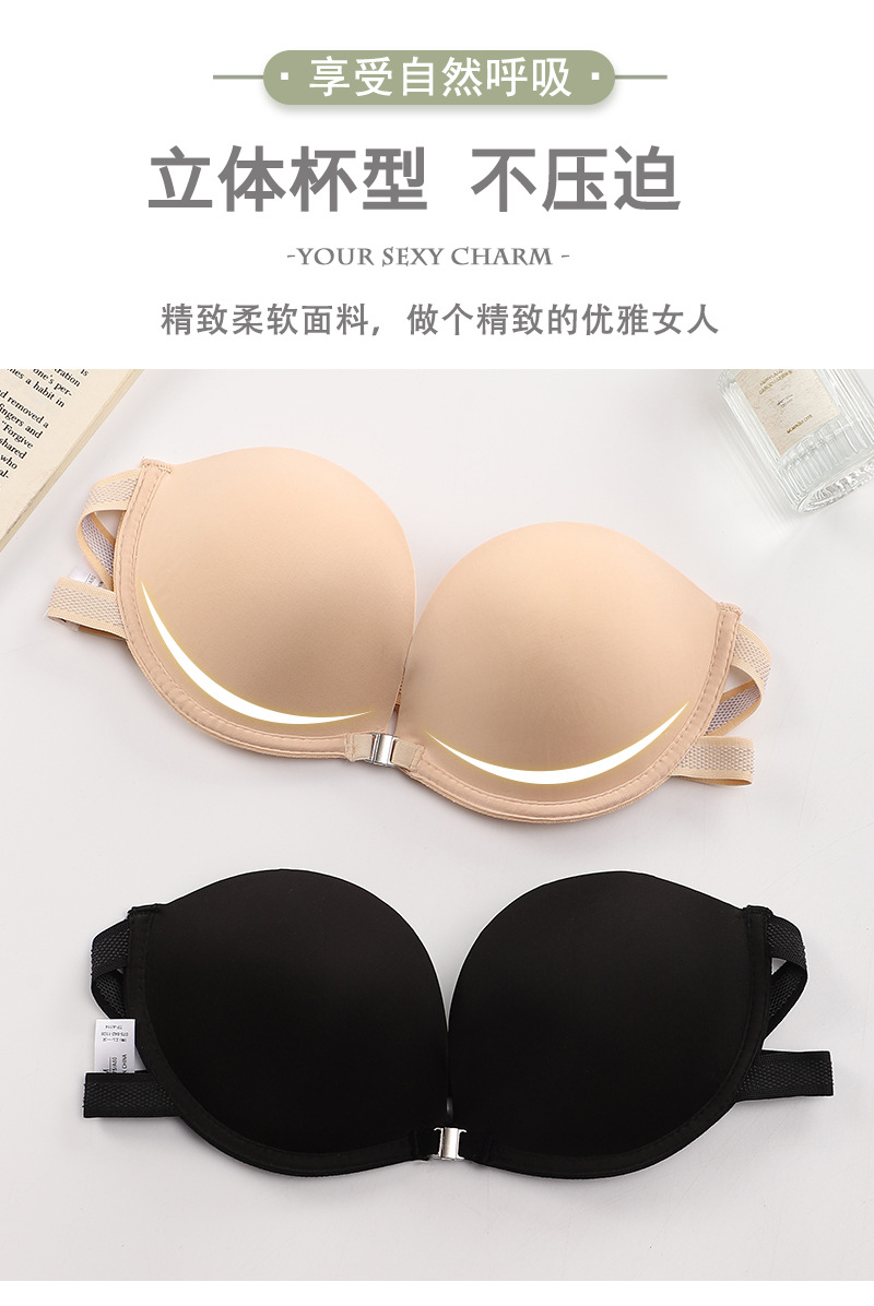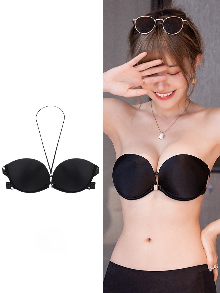 작은 가슴 속옷 여성용 끈이없는 보이지 않는 조절 가능한 푸시 업 속옷 미끄럼 방지 아름다운 등받이 목 끈이없는 앞 버클 브라스토어 가기
