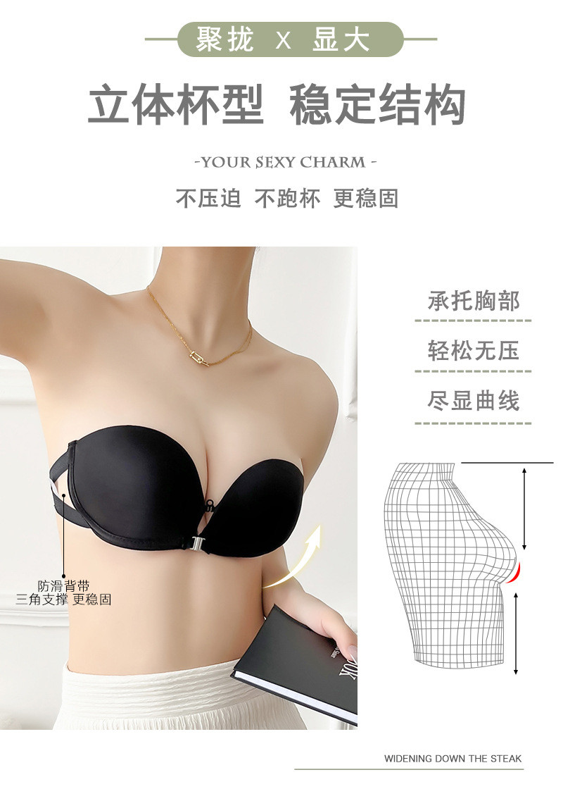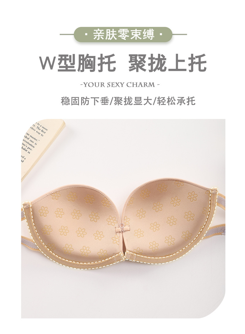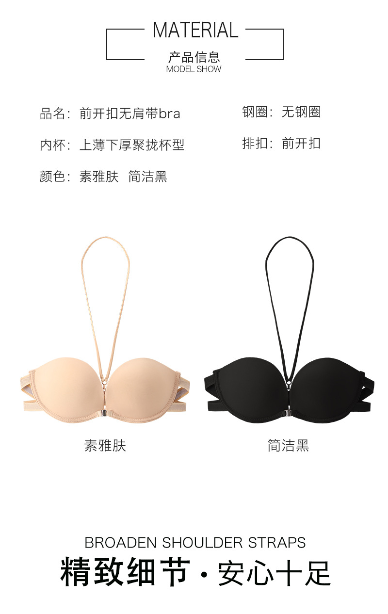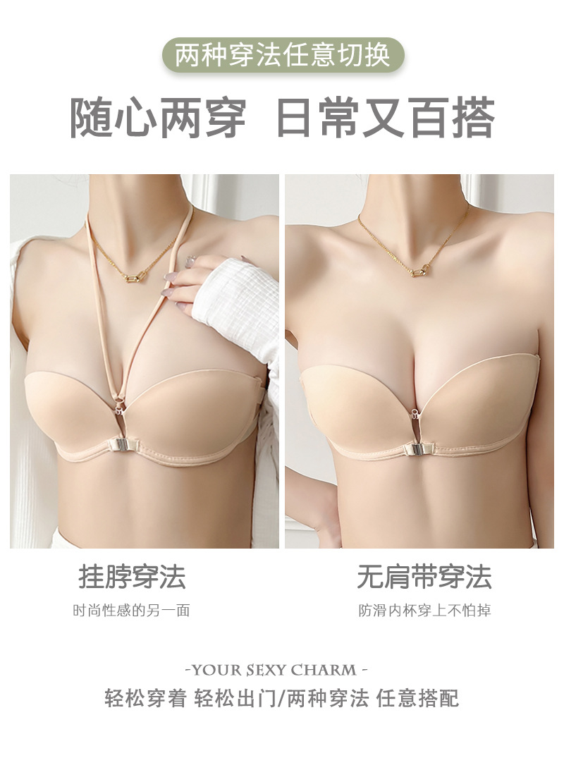 작은 가슴 속옷 여성용 끈이없는 보이지 않는 조절 가능한 푸시 업 속옷 미끄럼 방지 아름다운 등받이 목 끈이없는 앞 버클 브라스토어 가기