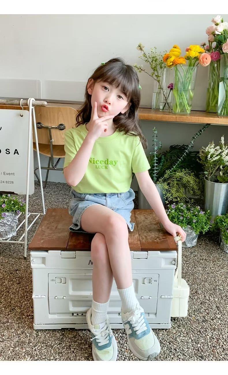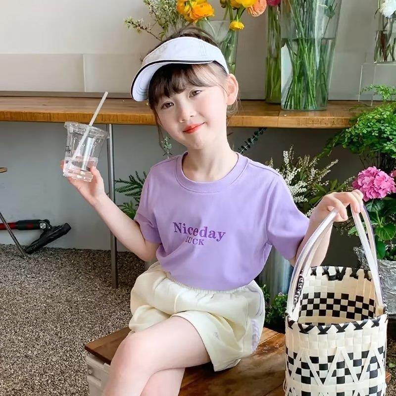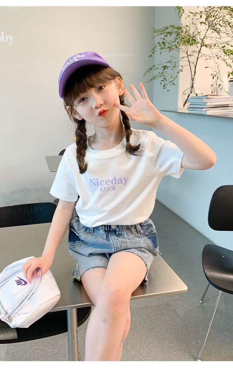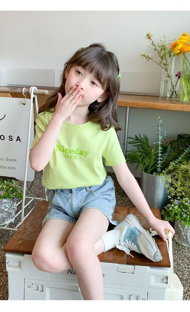여자 반팔 티셔츠 여름 2025 새로운 여름 반팔 스타일 어린이 다목적 멀티 컬러 바닥 탑 여름스토어 가기