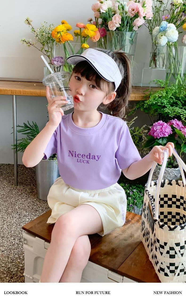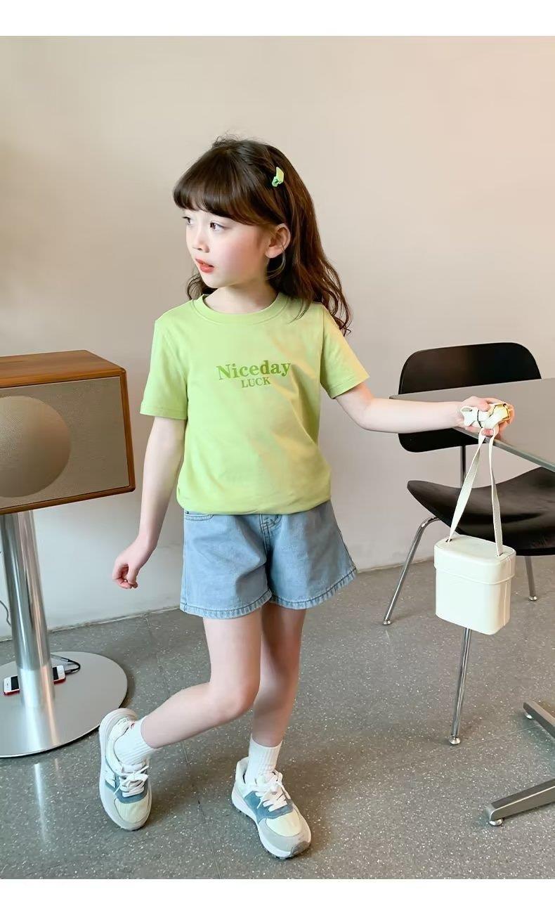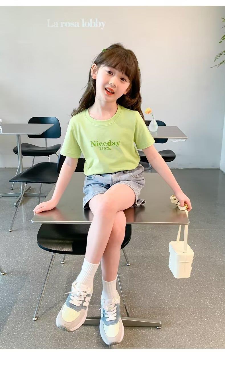 여자 반팔 티셔츠 여름 2025 새로운 여름 반팔 스타일 어린이 다목적 멀티 컬러 바닥 탑 여름스토어 가기