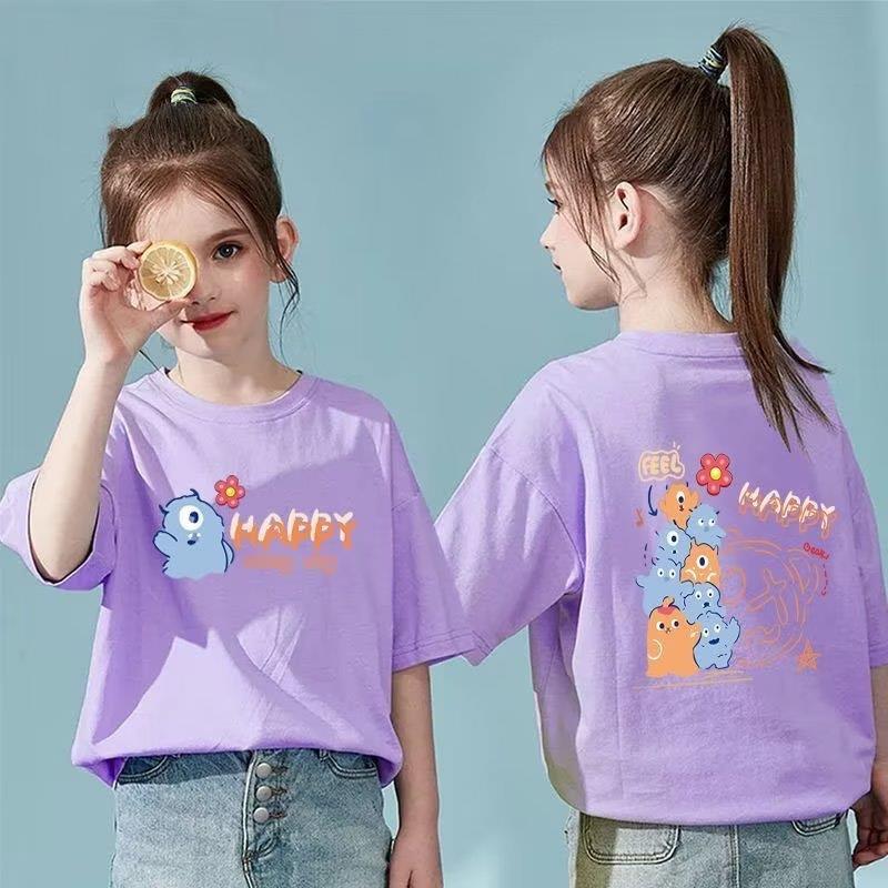 여자 반팔 티셔츠 2025 새로운 어린이 귀여운 만화 인쇄 다목적 대학 스타일 여름 옷 중대형 어린이 반팔스토어 가기