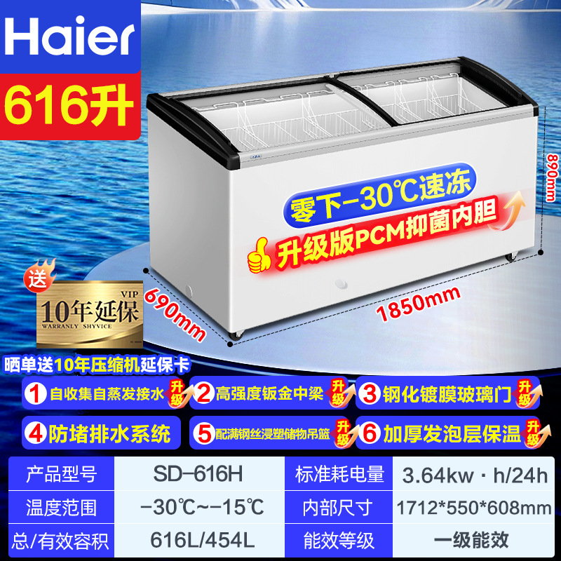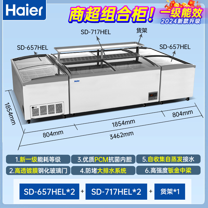 하이얼 SD-717HEL 상업용 대용량 투명 수평 냉동고 냉동 디스플레이 캐비닛 아이스크림 캐비닛 슈퍼마켓 섬 캐비닛스토어 가기