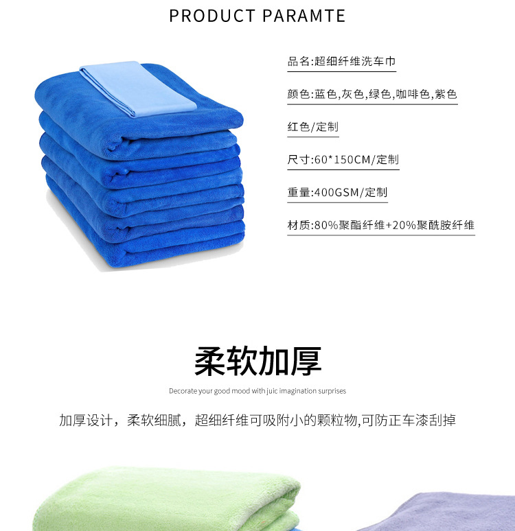 洗车毛巾60*150擦车巾吸水汽车专用批发超细纤维不掉毛加大号抹布亚马逊专供