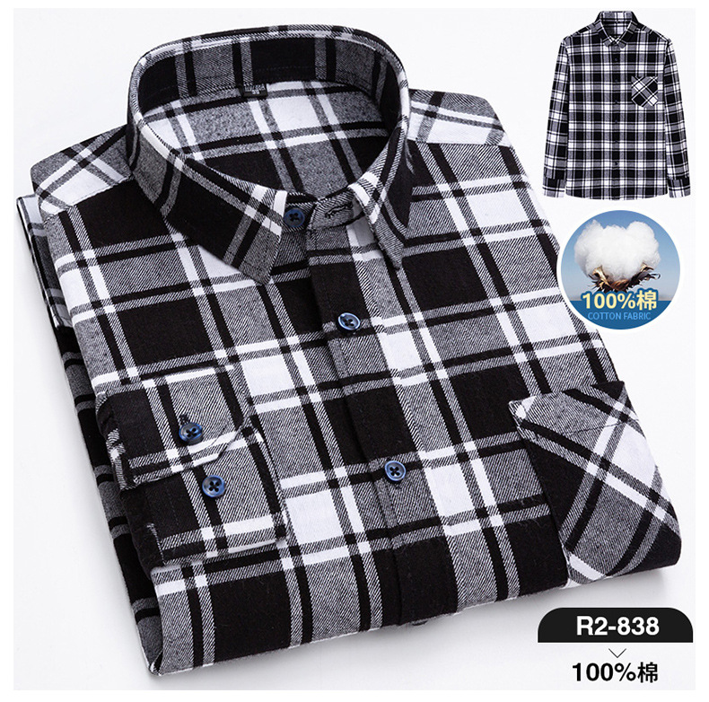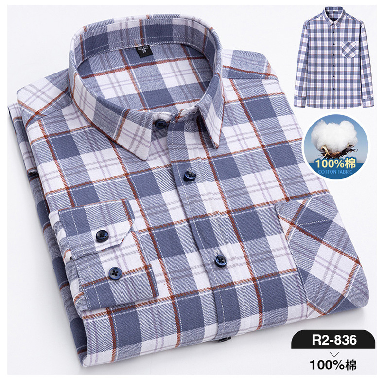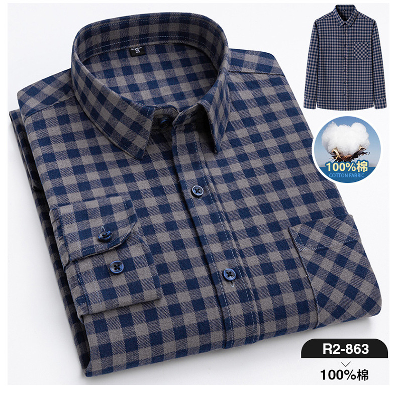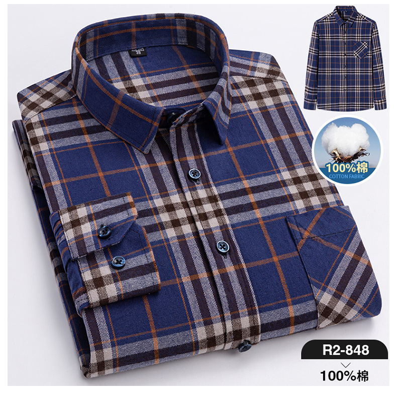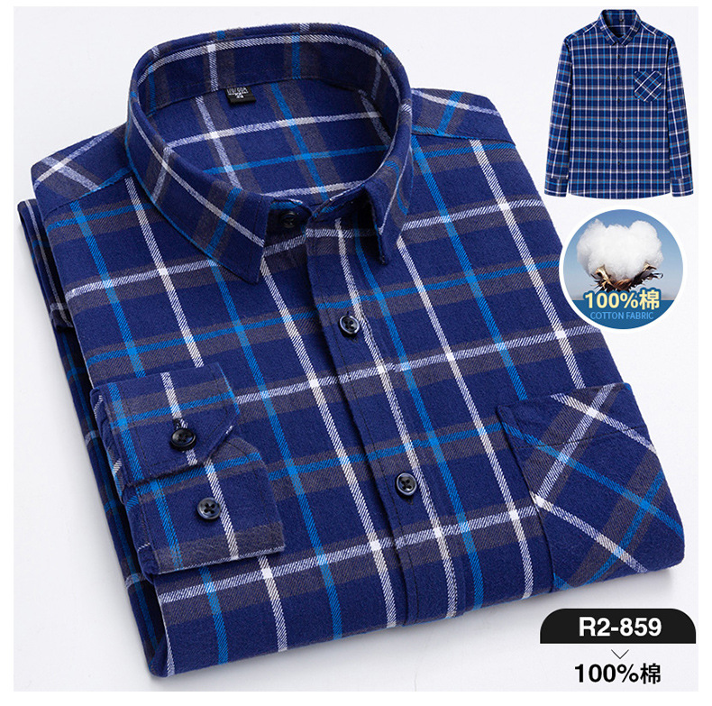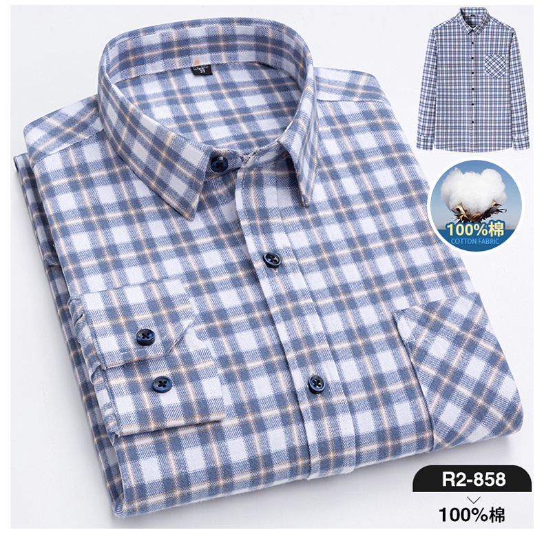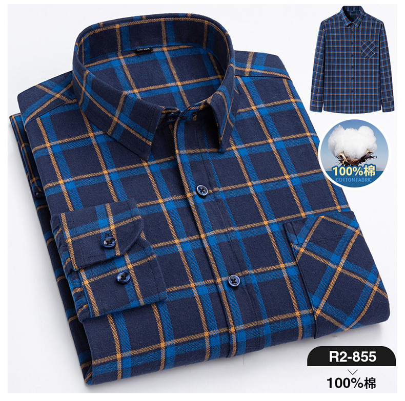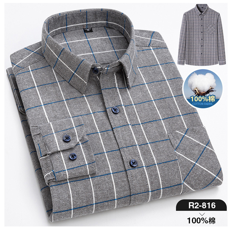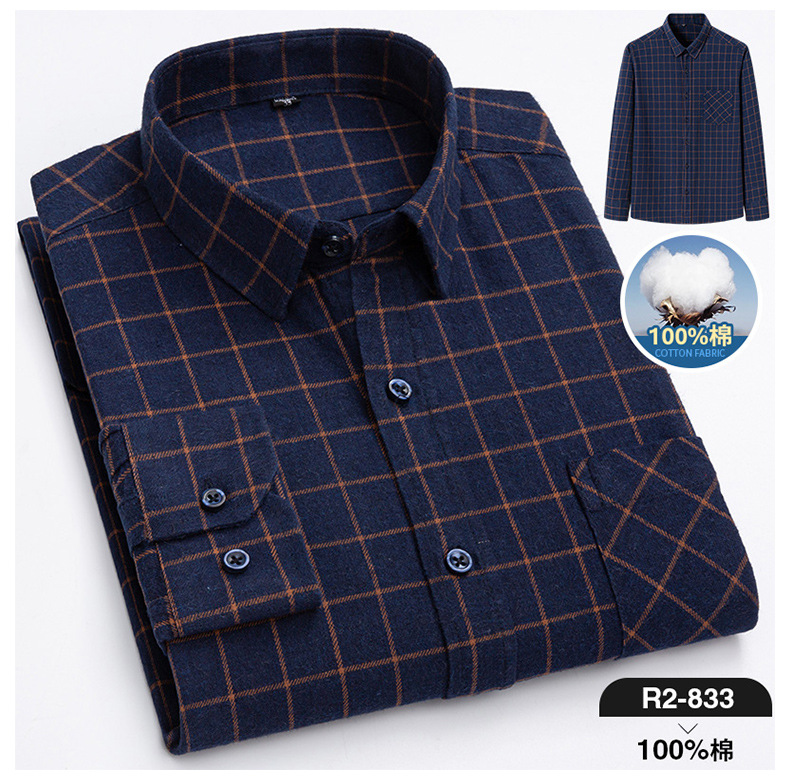 2025 신상 순면 기모 체크 긴팔 셔츠 남성용 한국 스타일 통기성 캐주얼 셔츠 재고 있음 남성복 가을 겨울스토어 가기