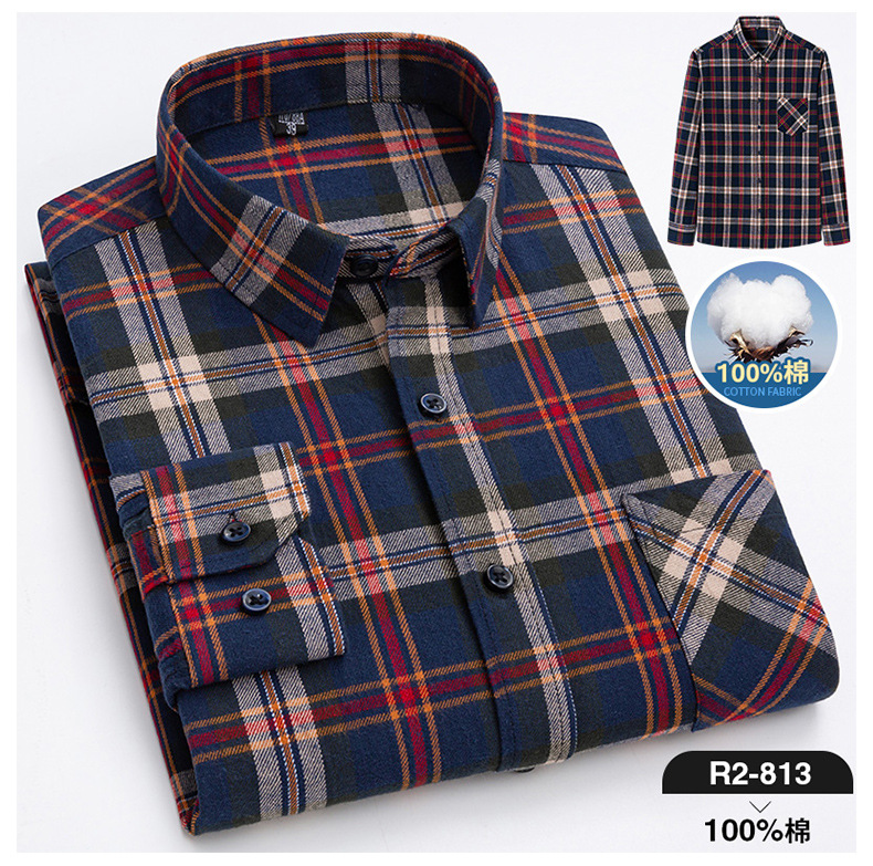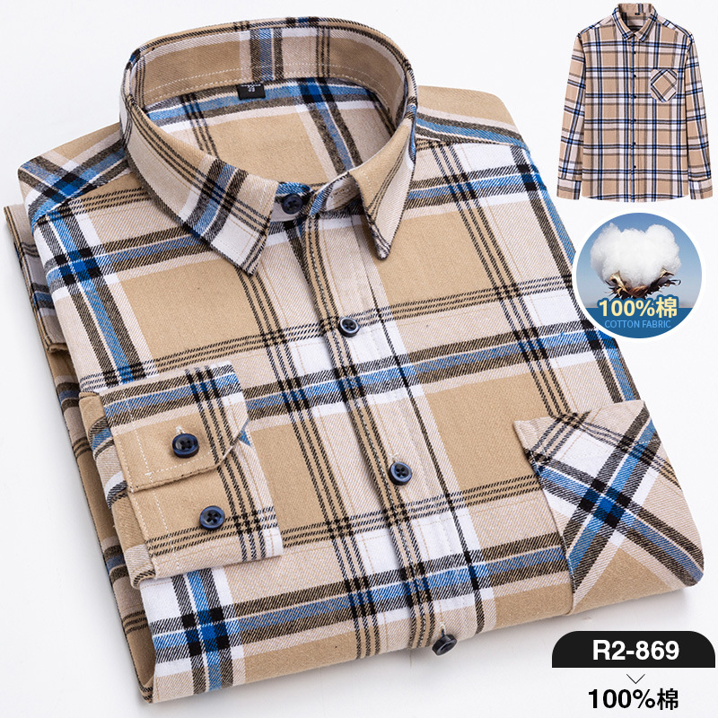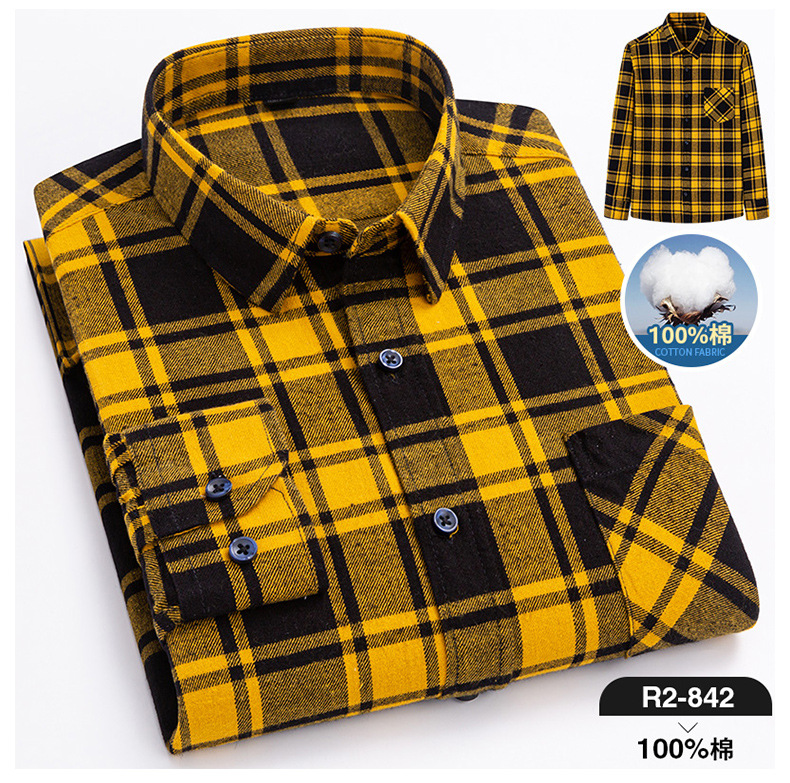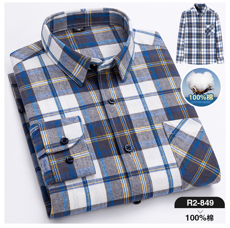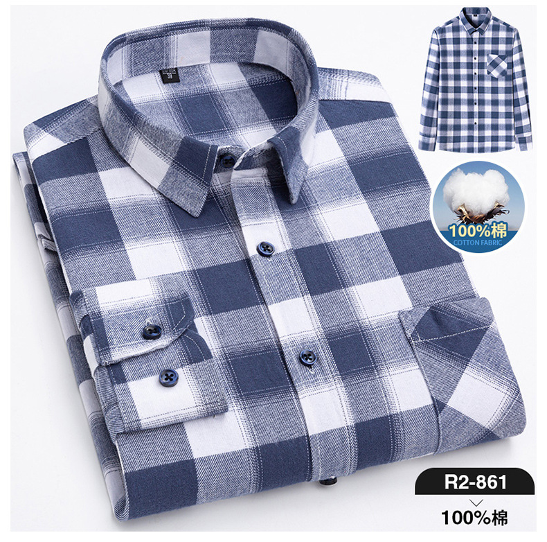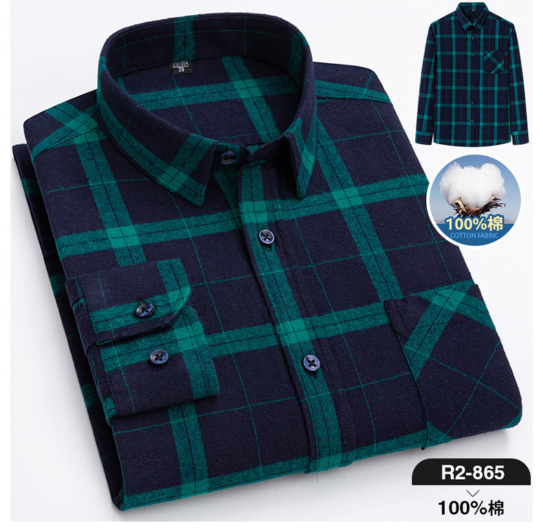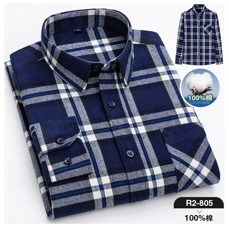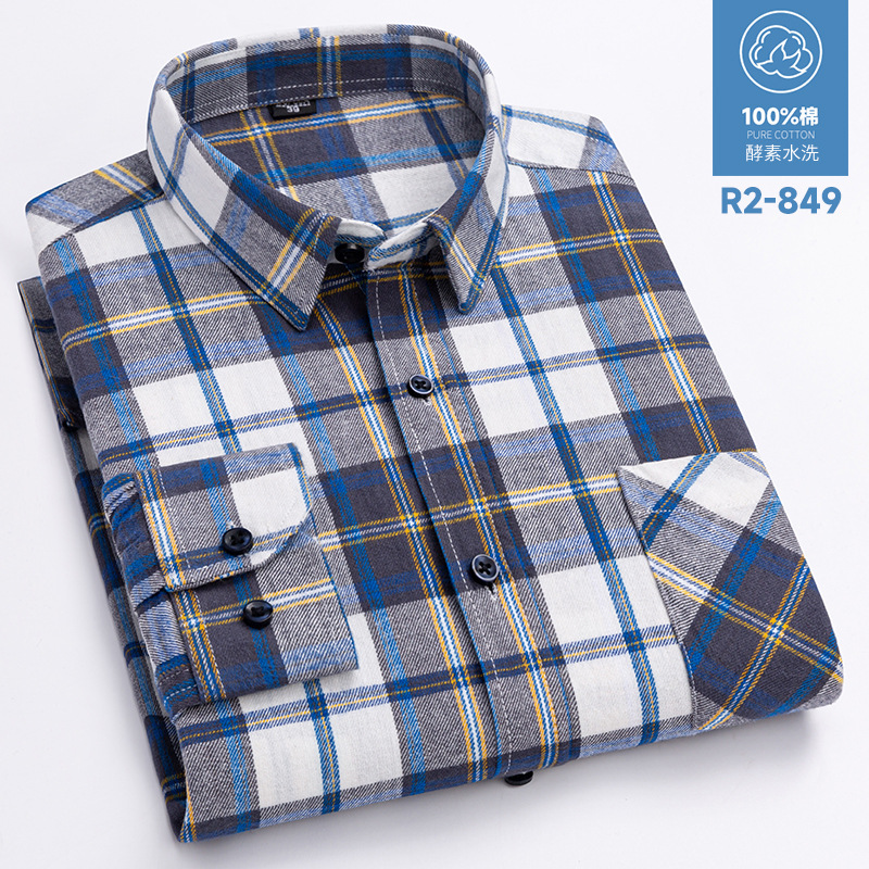 2025 신상 순면 기모 체크 긴팔 셔츠 남성용 한국 스타일 통기성 캐주얼 셔츠 재고 있음 남성복 가을 겨울스토어 가기
