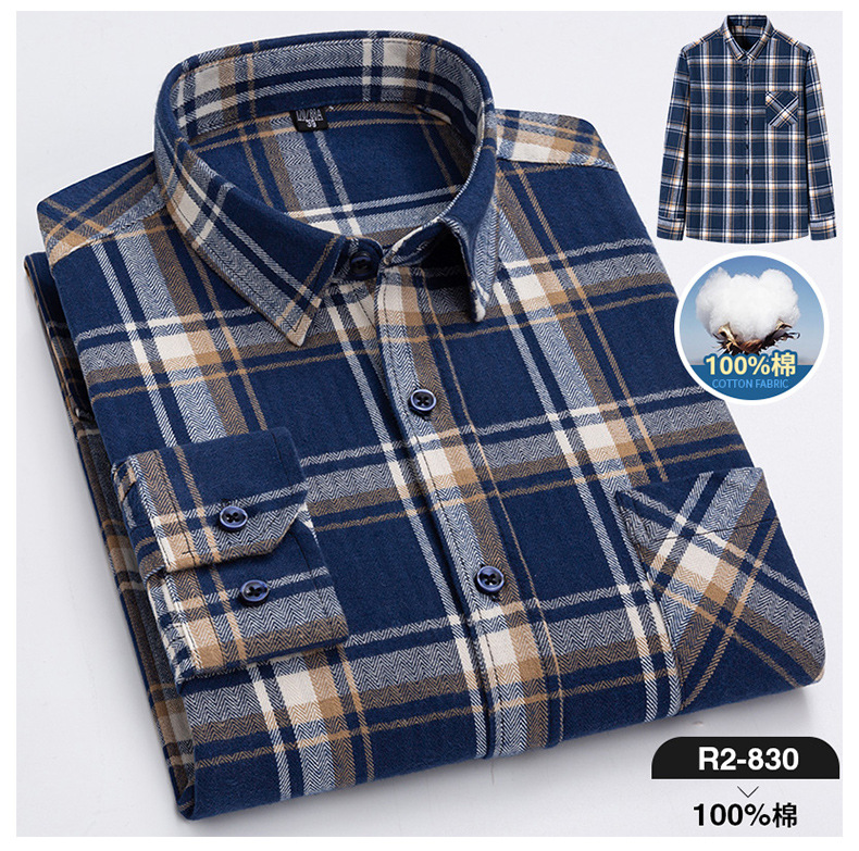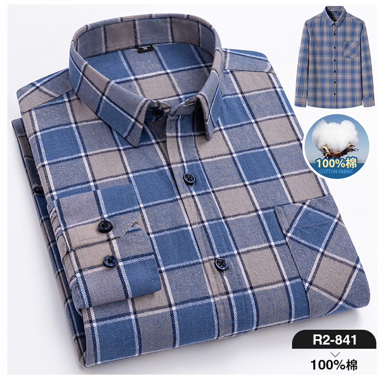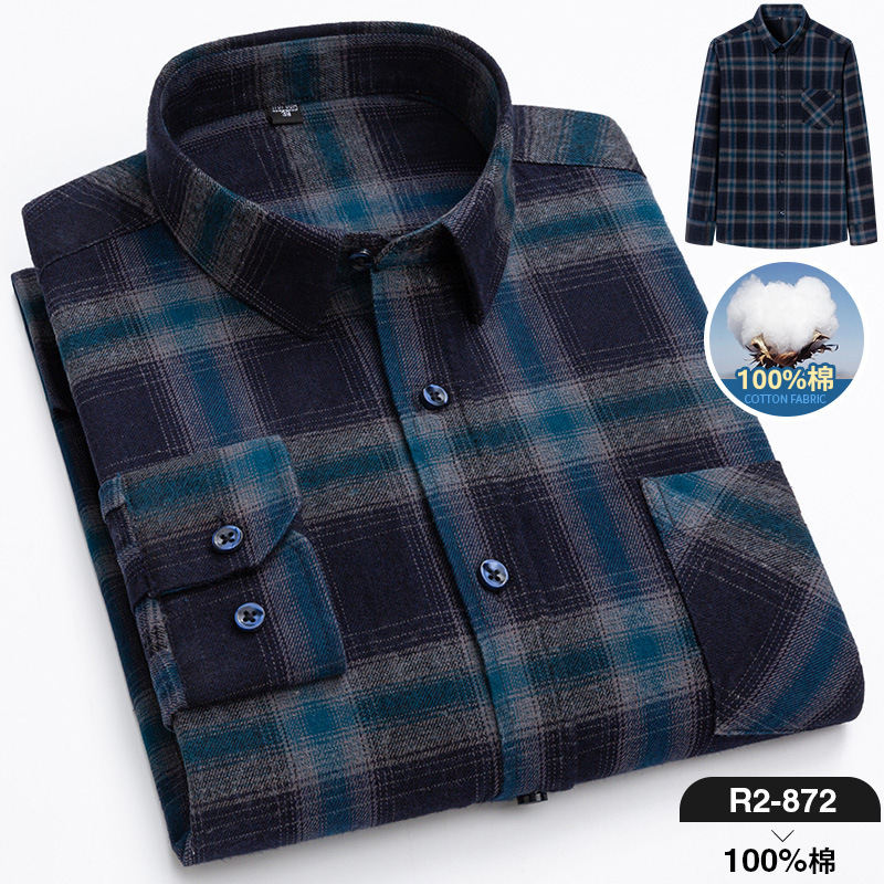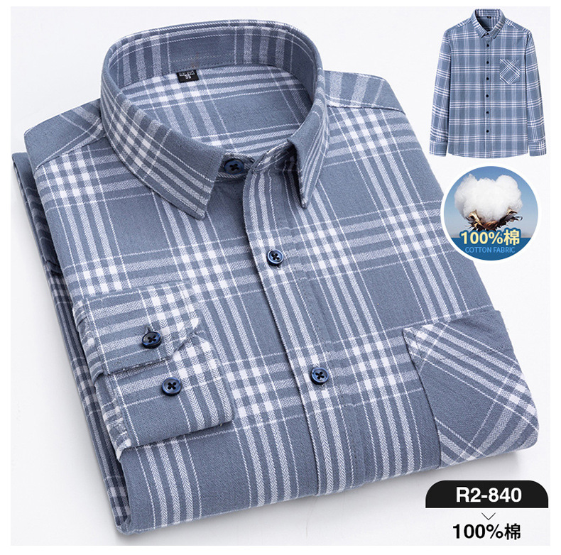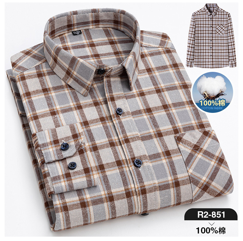 2025 신상 순면 기모 체크 긴팔 셔츠 남성용 한국 스타일 통기성 캐주얼 셔츠 재고 있음 남성복 가을 겨울