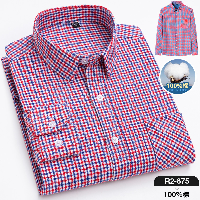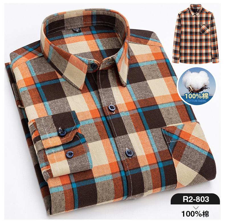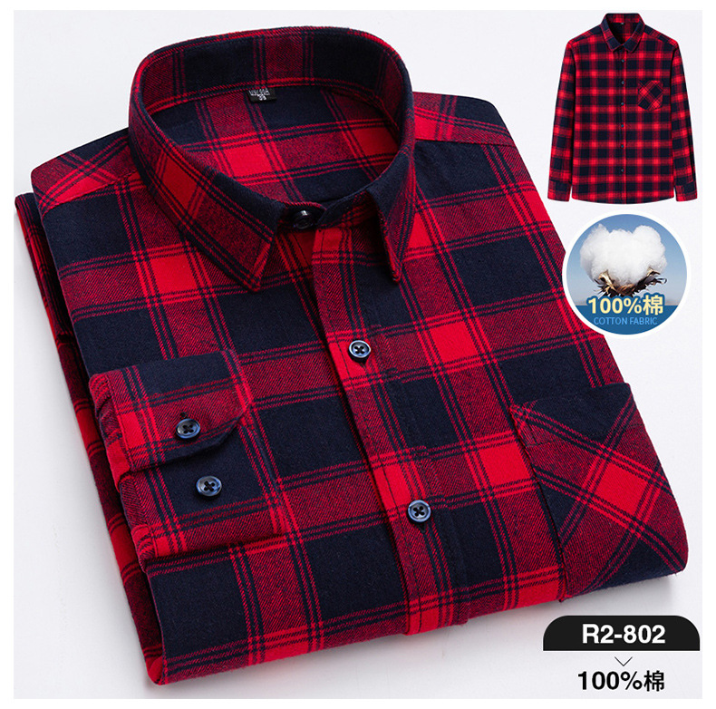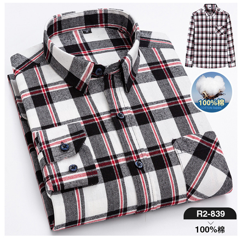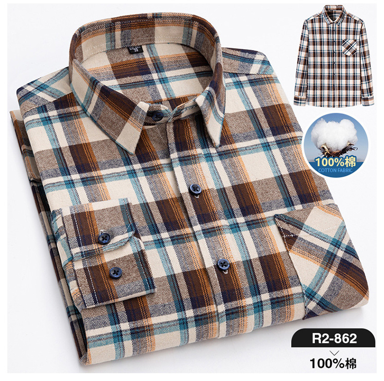 2025 신상 순면 기모 체크 긴팔 셔츠 남성용 한국 스타일 통기성 캐주얼 셔츠 재고 있음 남성복 가을 겨울