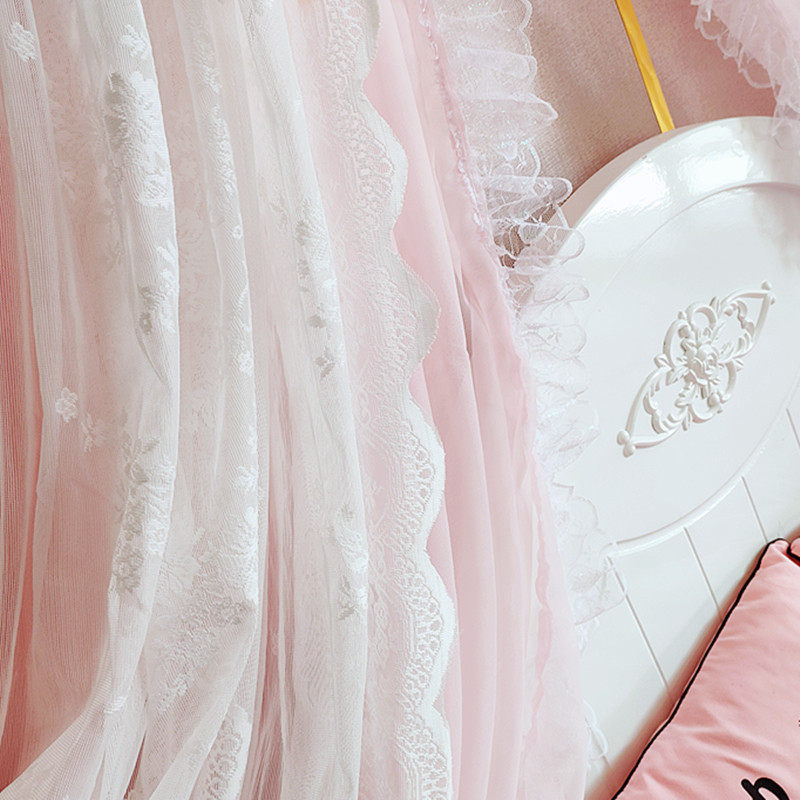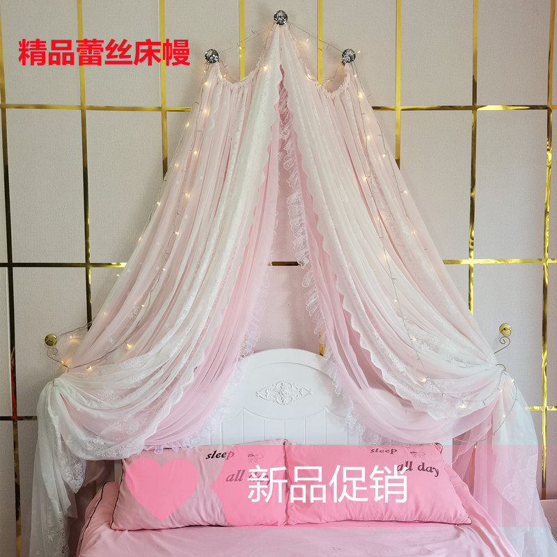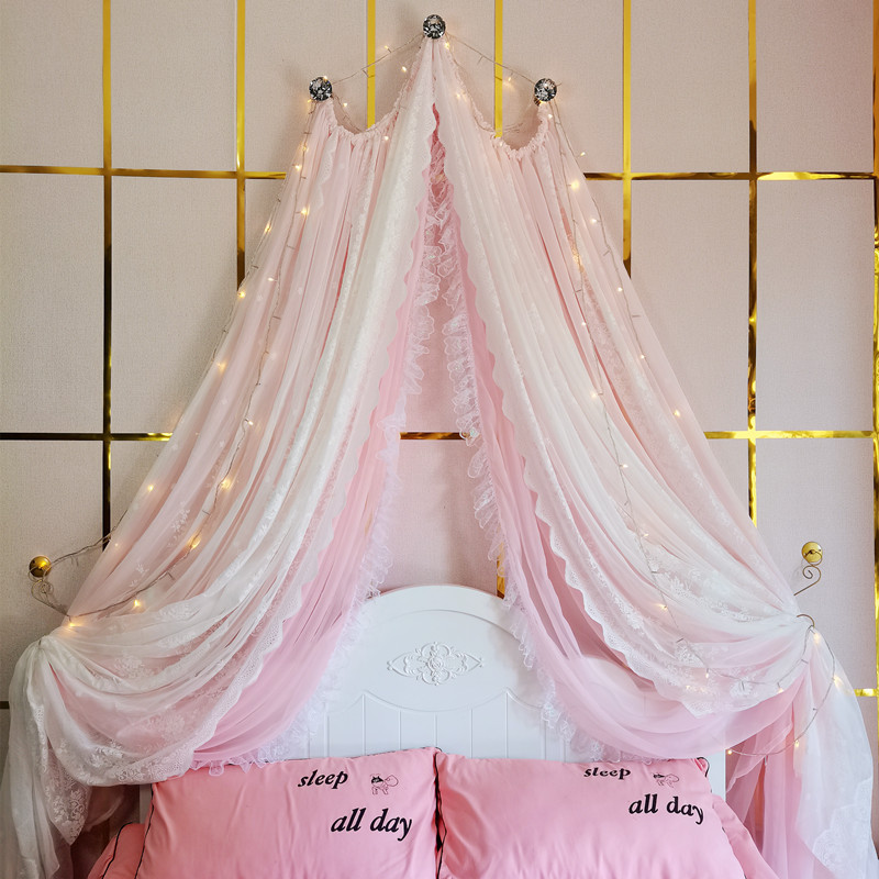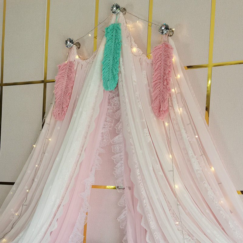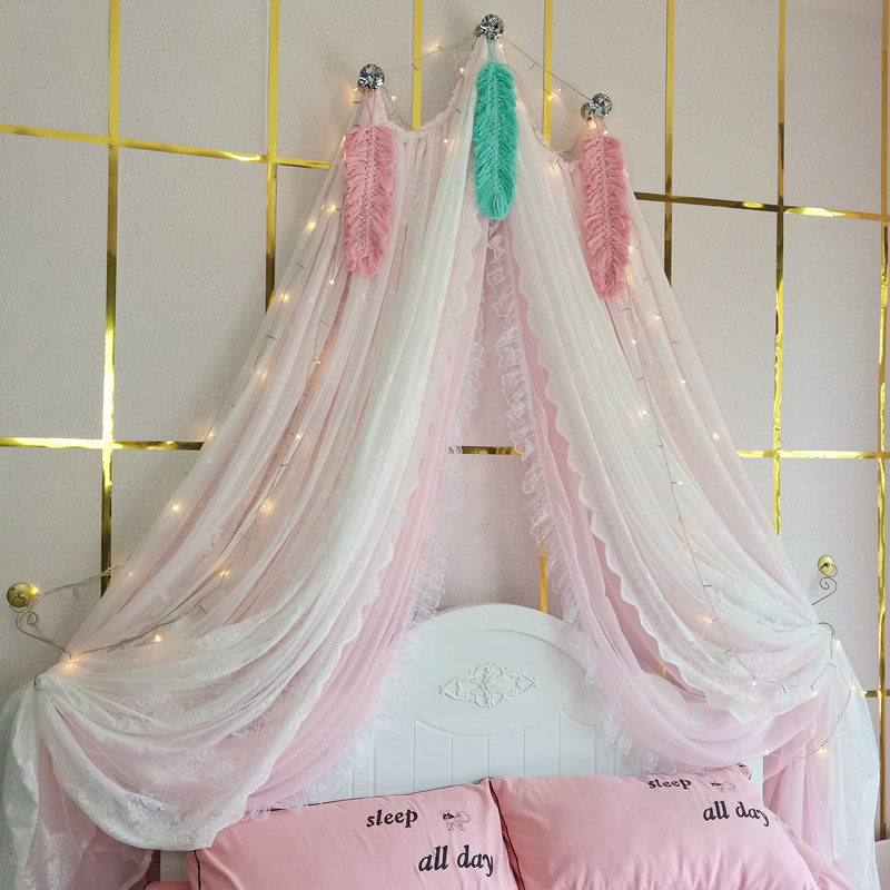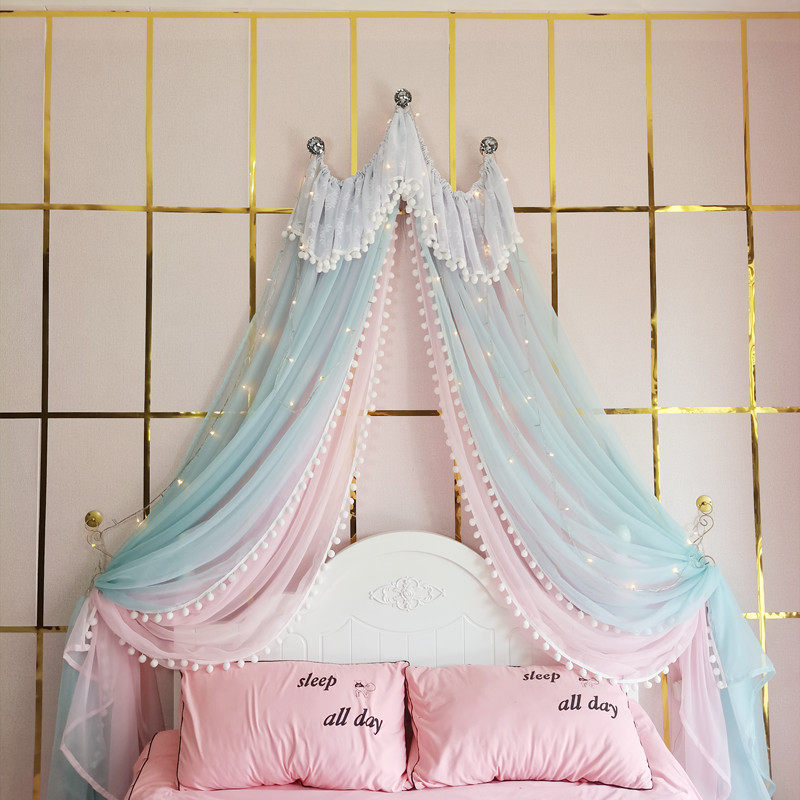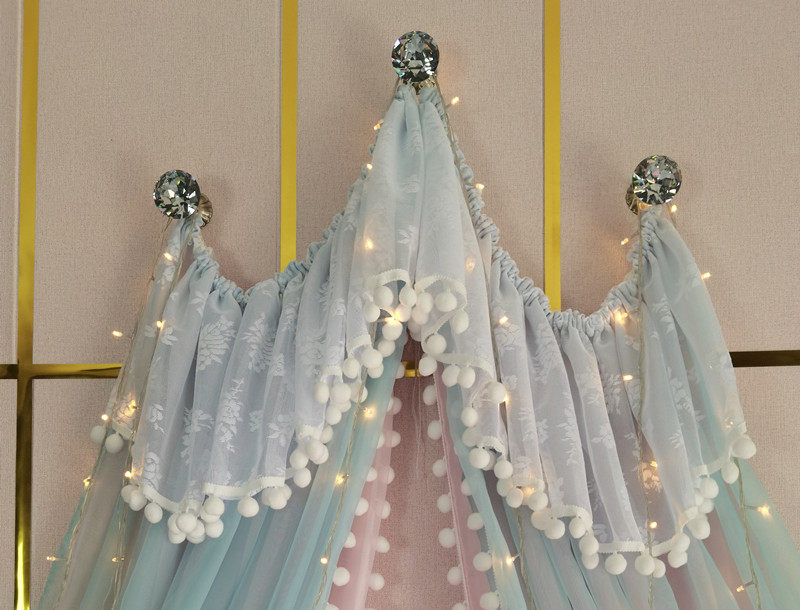 71TX 공주 레이스 간단한 새 침대 커튼 침대 커튼 어린이 방 장식 원사 마카롱 색상 모조 크리스탈 교수형 커튼스토어 가기