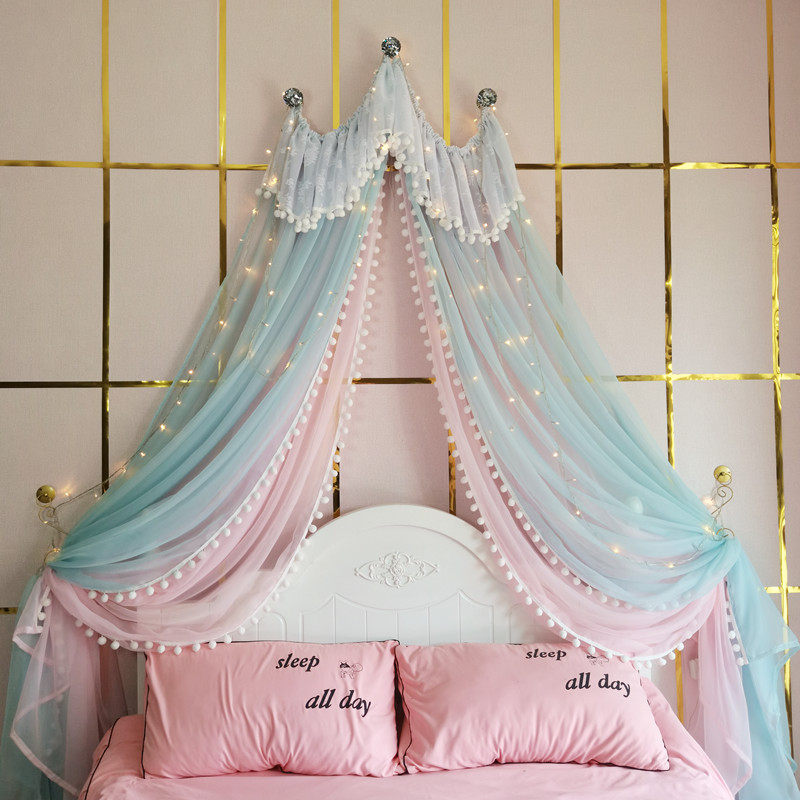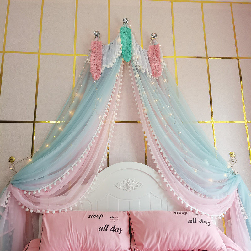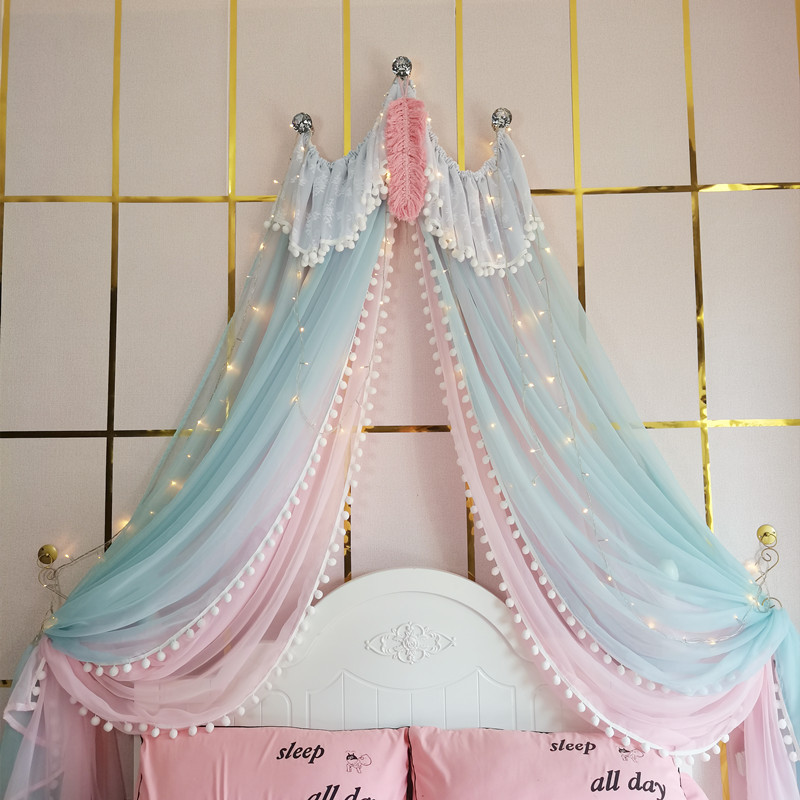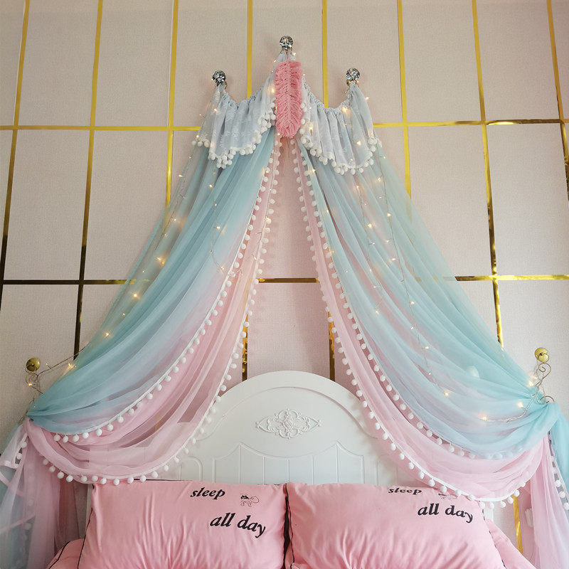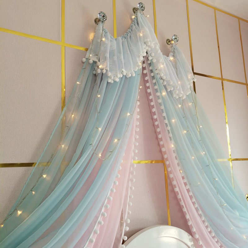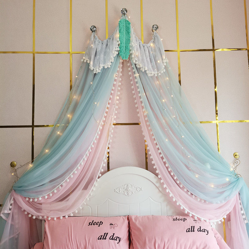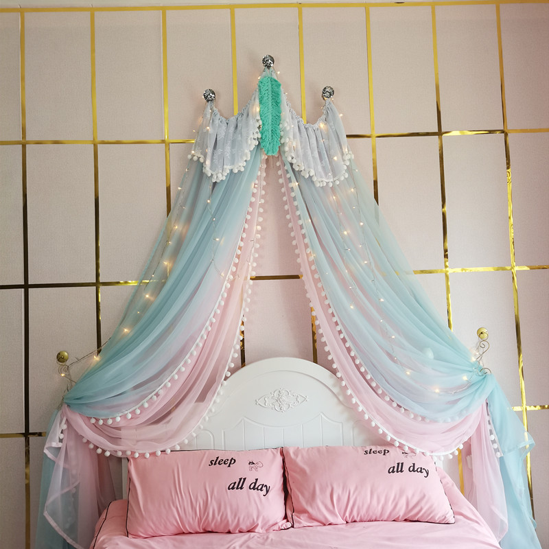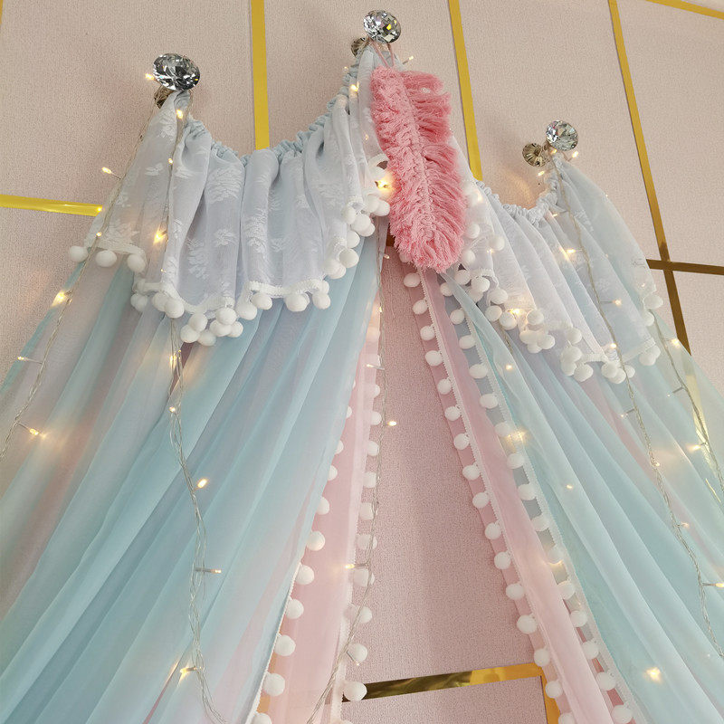 71TX 공주 레이스 간단한 새 침대 커튼 침대 커튼 어린이 방 장식 원사 마카롱 색상 모조 크리스탈 교수형 커튼