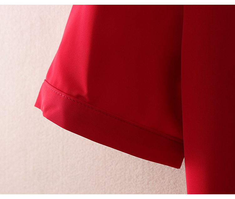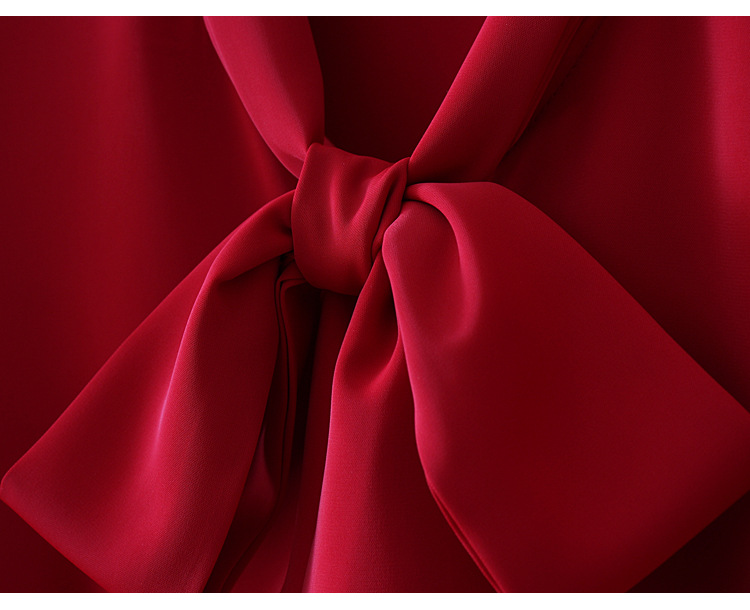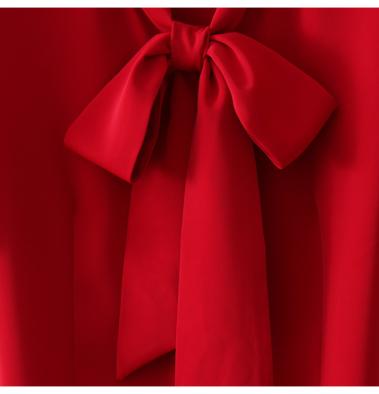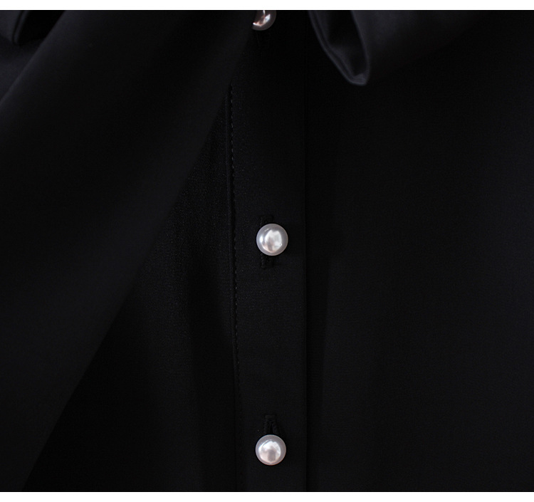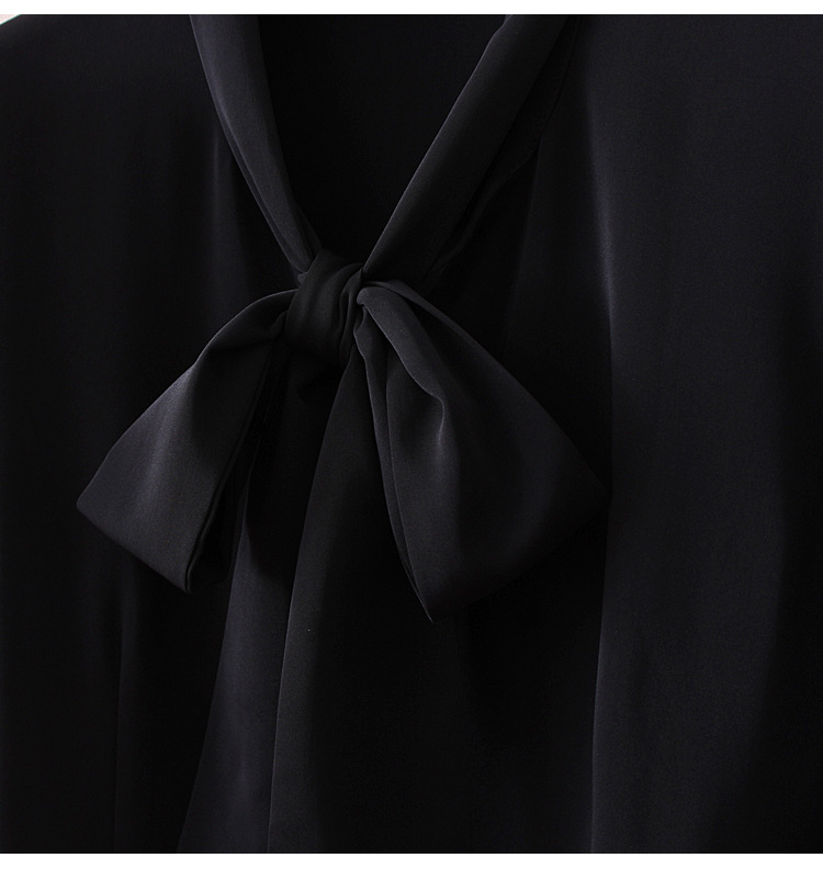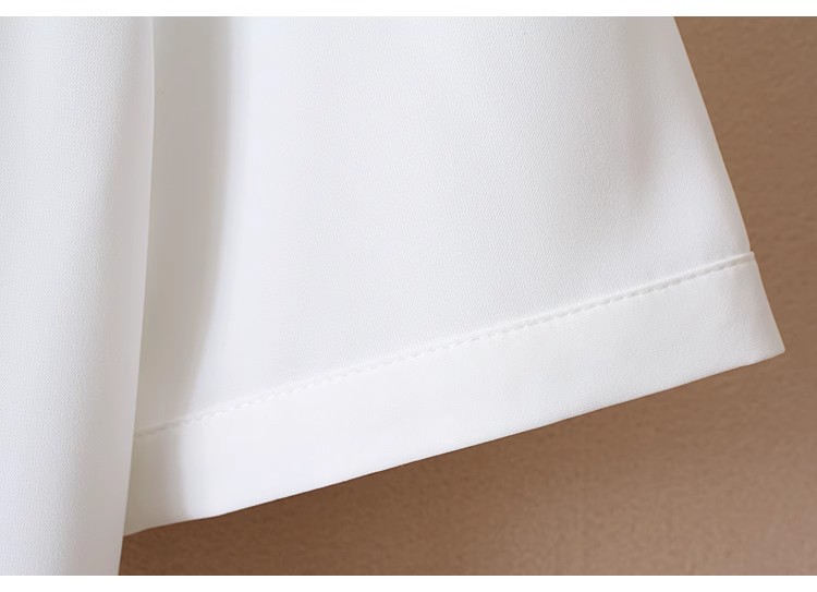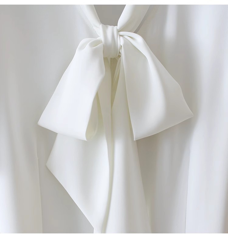 우아한 리본 활 간단한 우아한 스트레치 쉬폰 틈새 디자인 감각 원피스 셔츠 여성용 짧은 소매 화이트