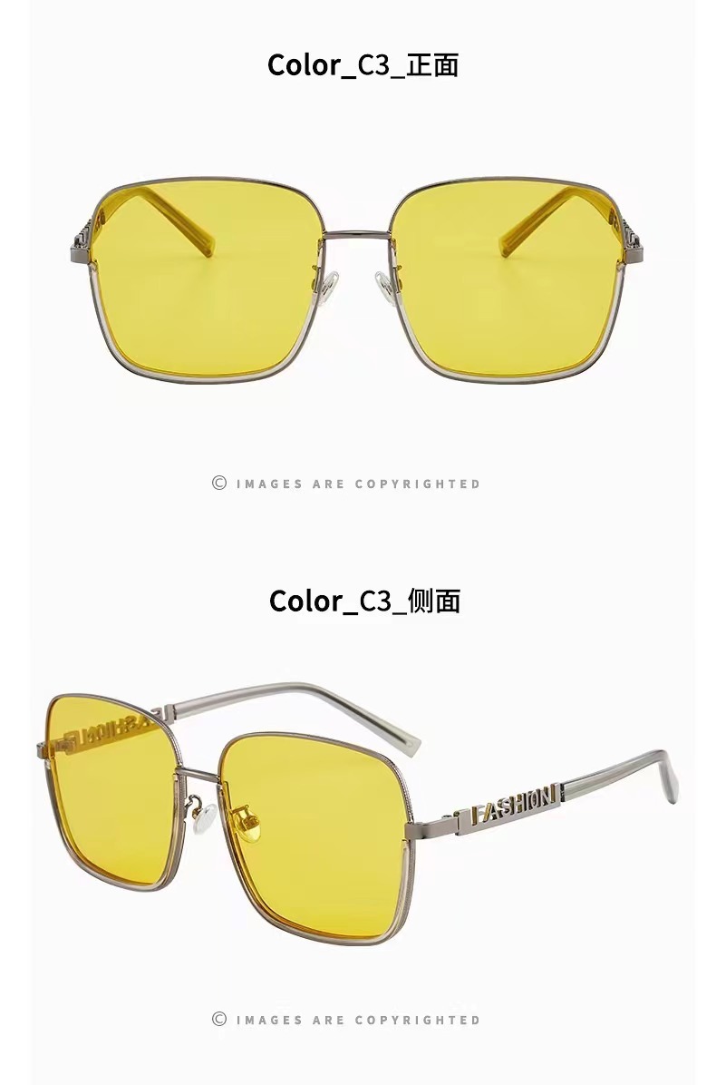 밝은 색상의 차색 선글라스, 둥근 얼굴, 스트리트 스타일, 샤오홍슈 커플 안경, 노란색 렌즈, 사각 프레임 선글라스스토어 가기