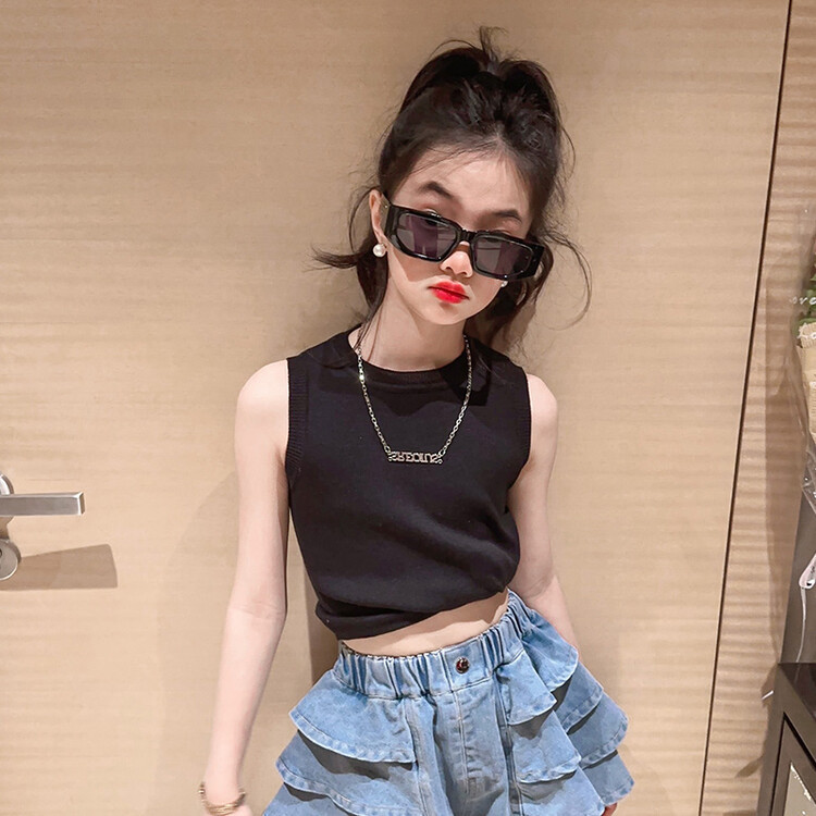 여아 여름 세트 2023 여름 원피스 유행 민소매 스웨터 데님 반바지 스커트 투피스 세트
