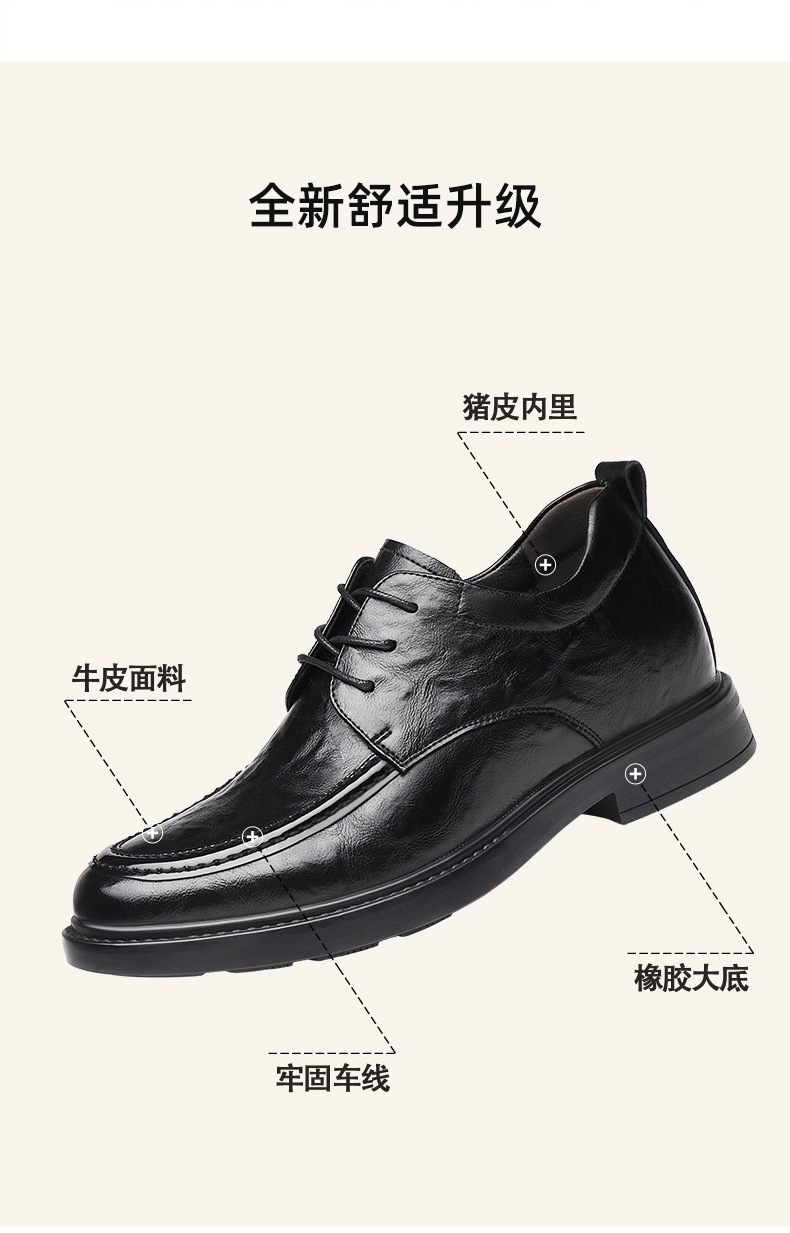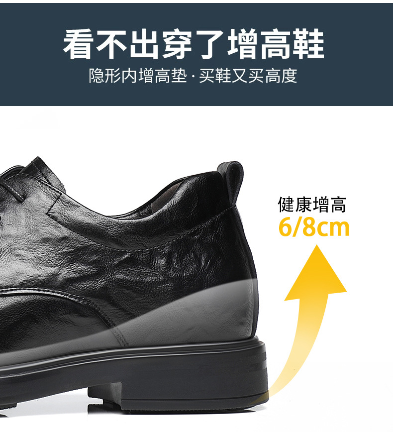 내부 높이 증가 비즈니스 캐주얼 가죽 신발 남성용 8cm 진짜 소가죽 통기성 남성용 보이지 않는 높이 증가 작업 소프트 솔 남성 신발스토어 가기